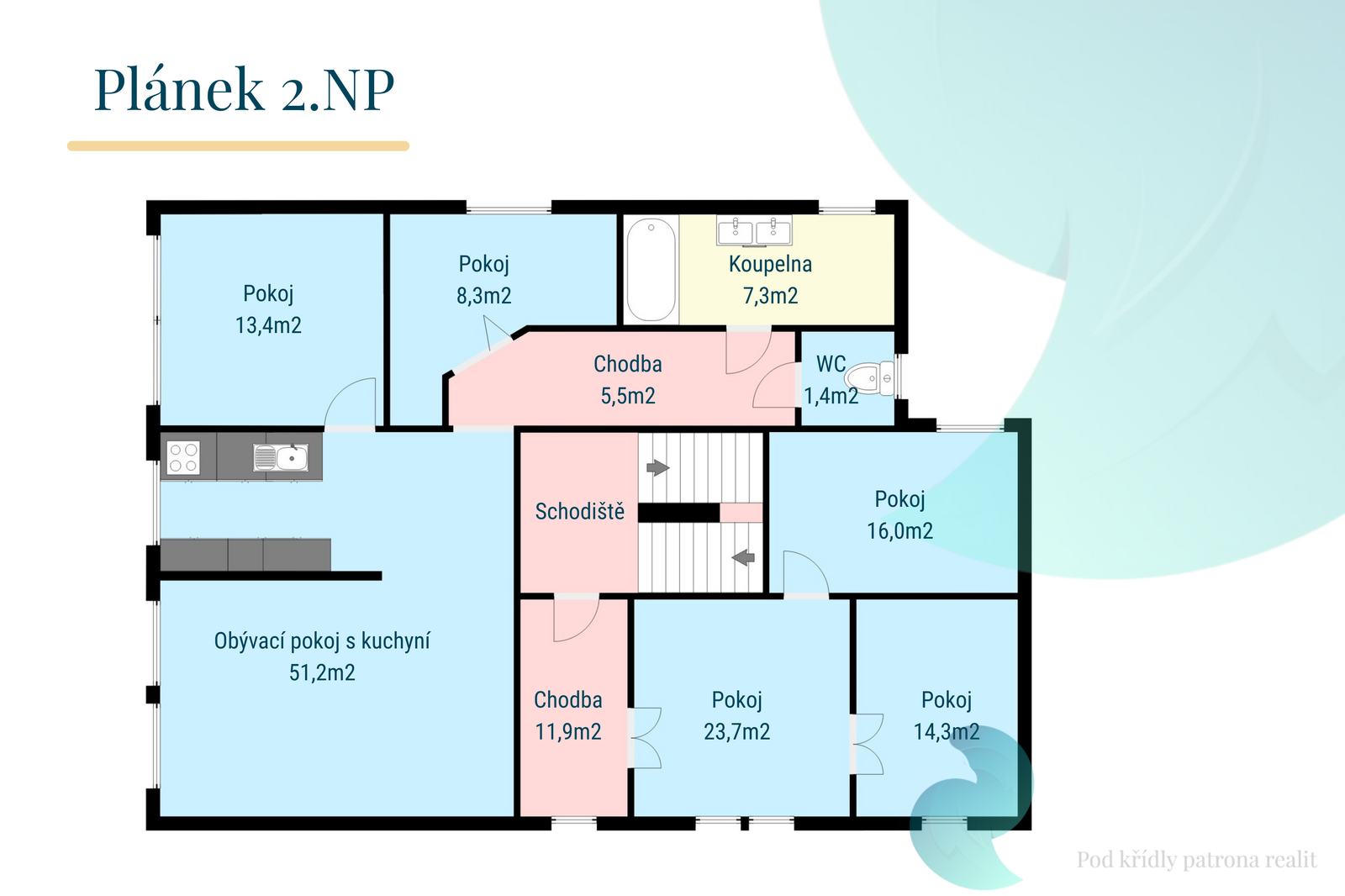 • Byt 6+kk v 1. patře o velikosti 167 m² po rekonstrukci v roce 2023