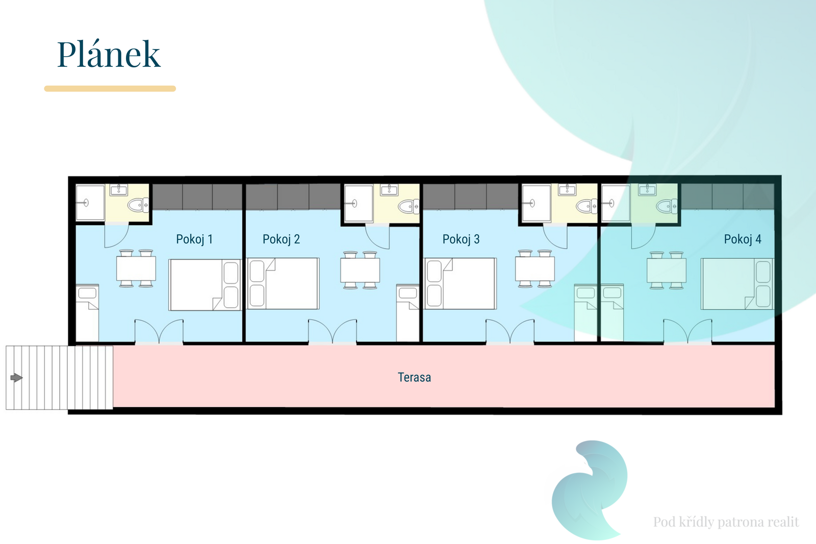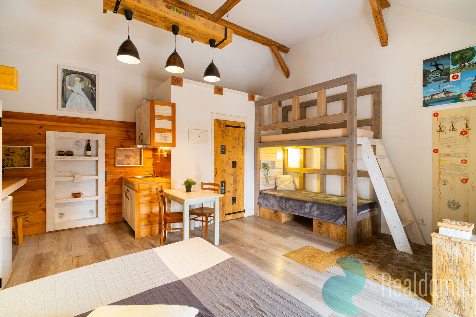 Dům je rozdělen na 5 apartmánů – 4× 1+kk a 1× 5+kk. Dispozice je ideální jak pro vlastní užívání, tak pro krátkodobé pronájmy s reálným výnosovým potenciálem.