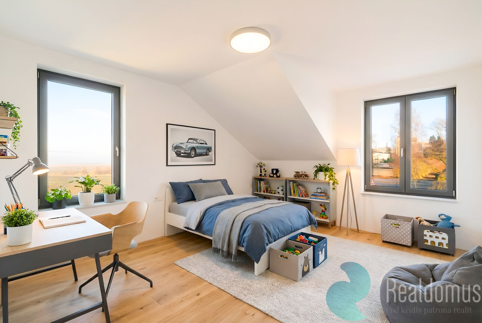 - Průchozí garáž přímo do domu – pohodlí při nákupech i v nepříznivém počasí.