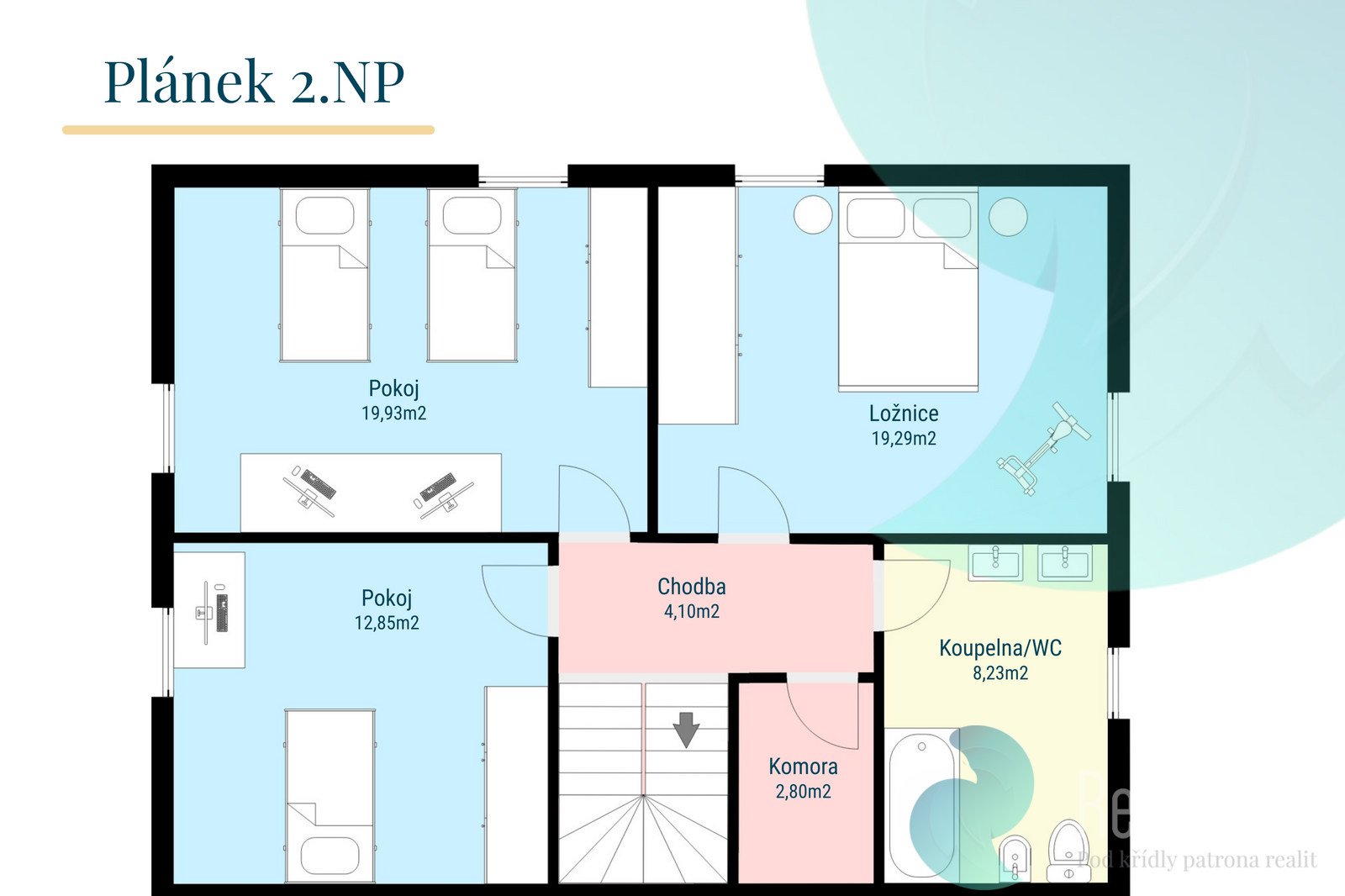 Horní patro je využito pro celou rodinu:
