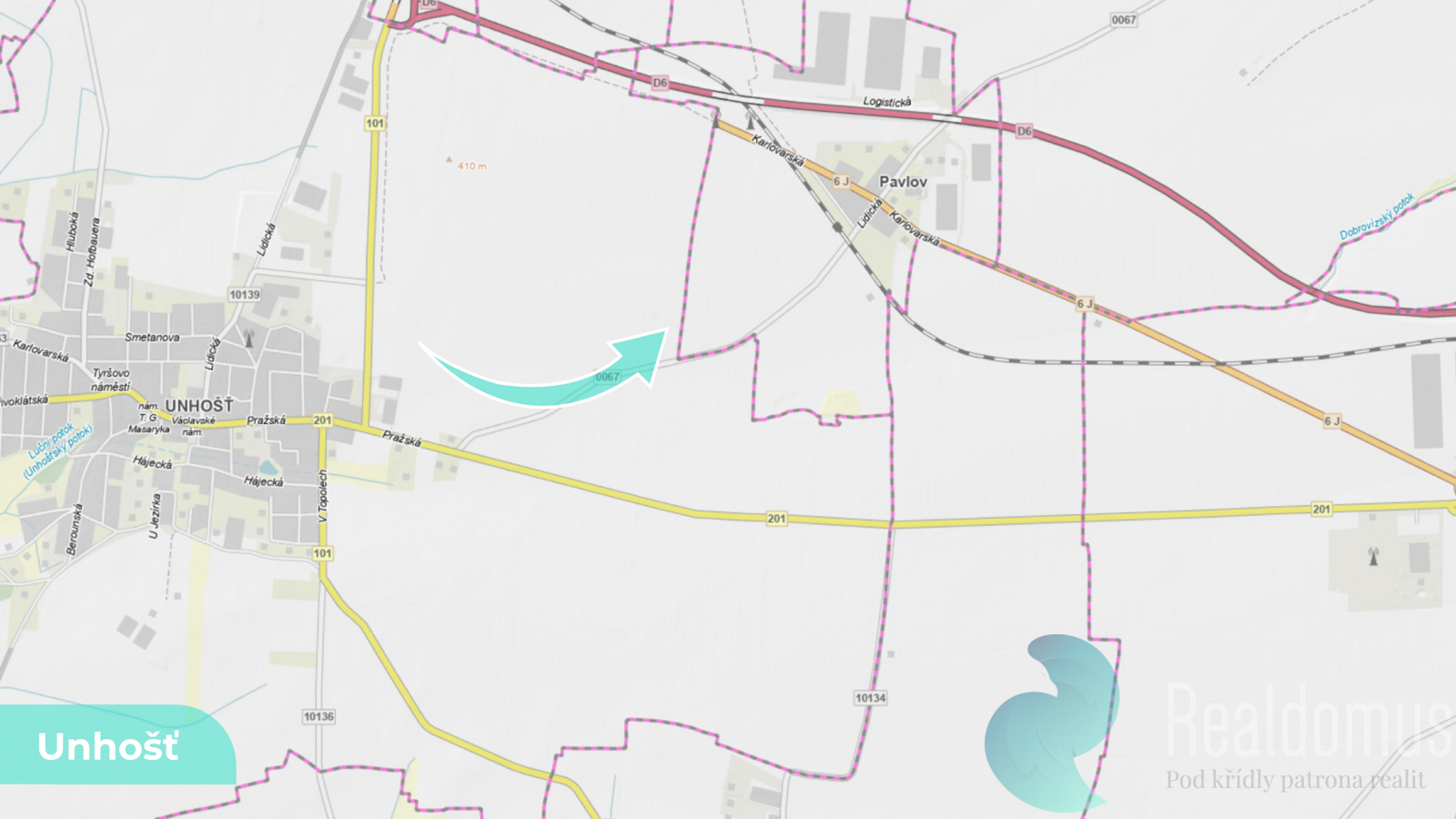 Díky blízkosti dálnice D6 a logistické zóny Pavlov se jedná o strategickou lokalitu s dlouhodobým investičním potenciálem.