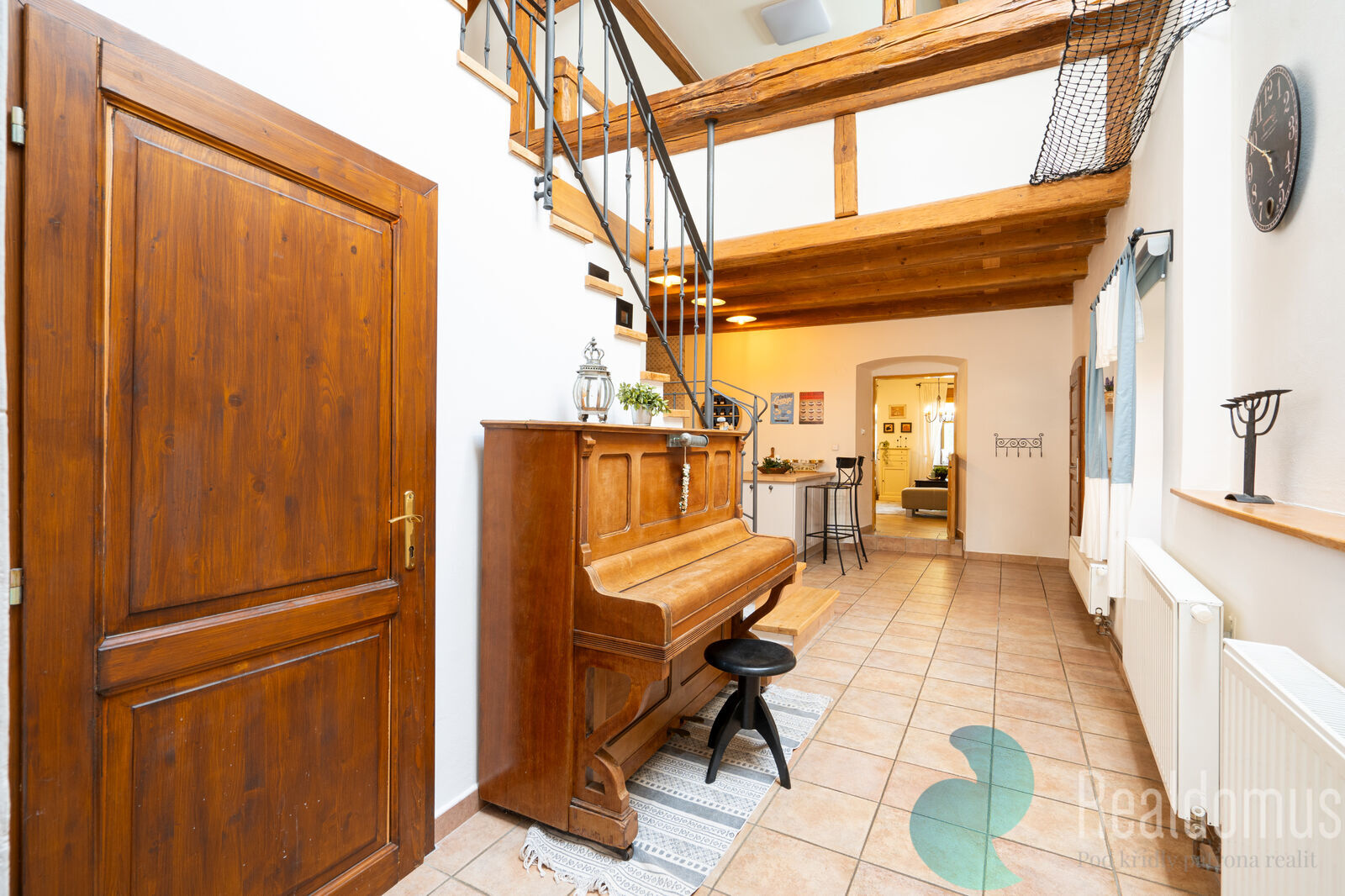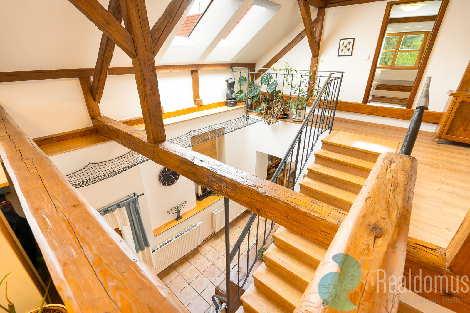 Rezidenční část usedlosti o ploše 197 m² poskytuje vysoký komfort pro rodinné bydlení, dlouhodobý či krátkodobý pronájem. Dispozice je řešena do dvou podlaží – v přízemí se nachází velkorysý obývací prostor s krbovými kamny, kuchyně s jídelnou a přímým vstupem na terasu, v patře pak galerie s pracovnou, dvě prostorné ložnice a koupelna. Každý detail domu ukazuje vysoký standard provedení i kvalitu materiálů.