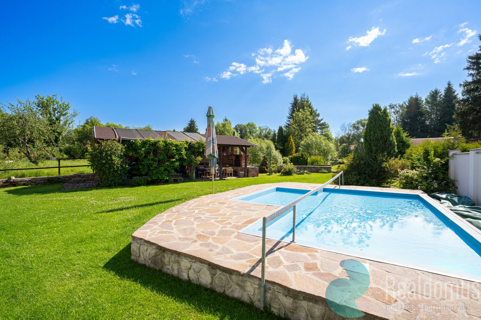 Na rozlehlé zahradě se nachází vyhřívaný bazén, pergola s venkovní kuchyní a grilem, a několik romantických zákoutí přímo u vody. To vše vytváří ideální podmínky pro rekreaci, ale i pro další rozvoj podnikatelského záměru v oblasti turismu či ubytování vyššího standardu.