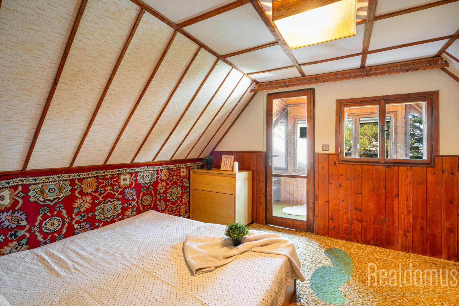 Podkroví naopak nabízí jeden velký pokoj, který lze využít jako ložnici nebo možnost jej vybavit více lůžky. Zasklený balkon ve stylu zimní zahrady – perfektní pro večerní relax s knihou s výhledem do přírody.