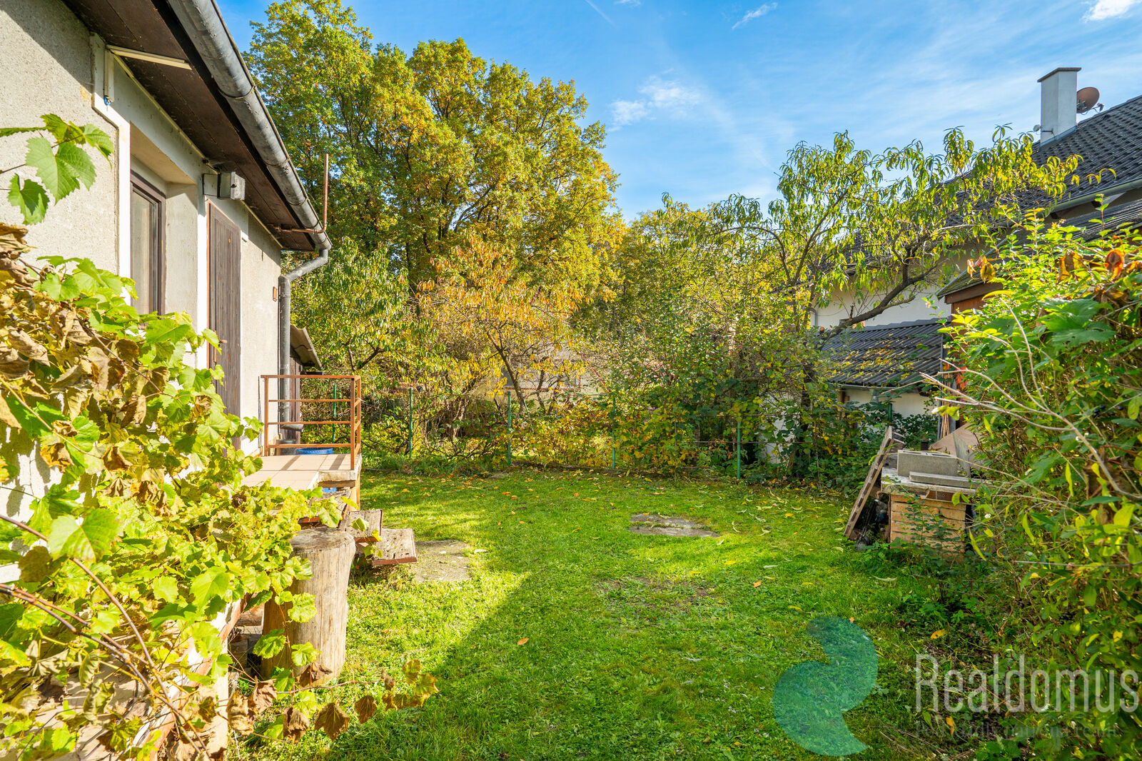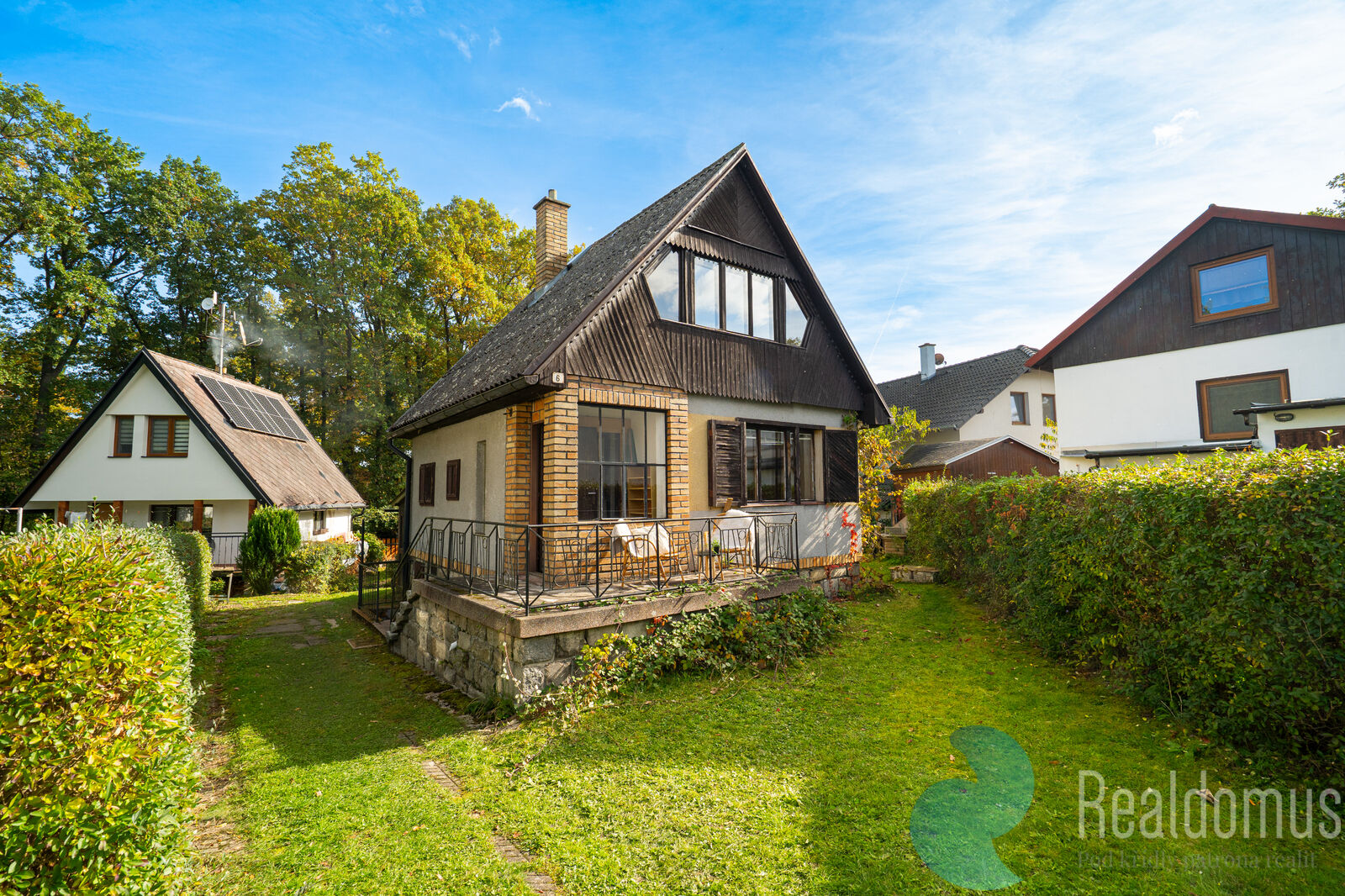 Z boku chaty je zajištěn přímý vstup na zahradu. U hlavního vchodu se pak nachází menší terasa, která vybízí k příjemnému posezení například u odpolední kávy.