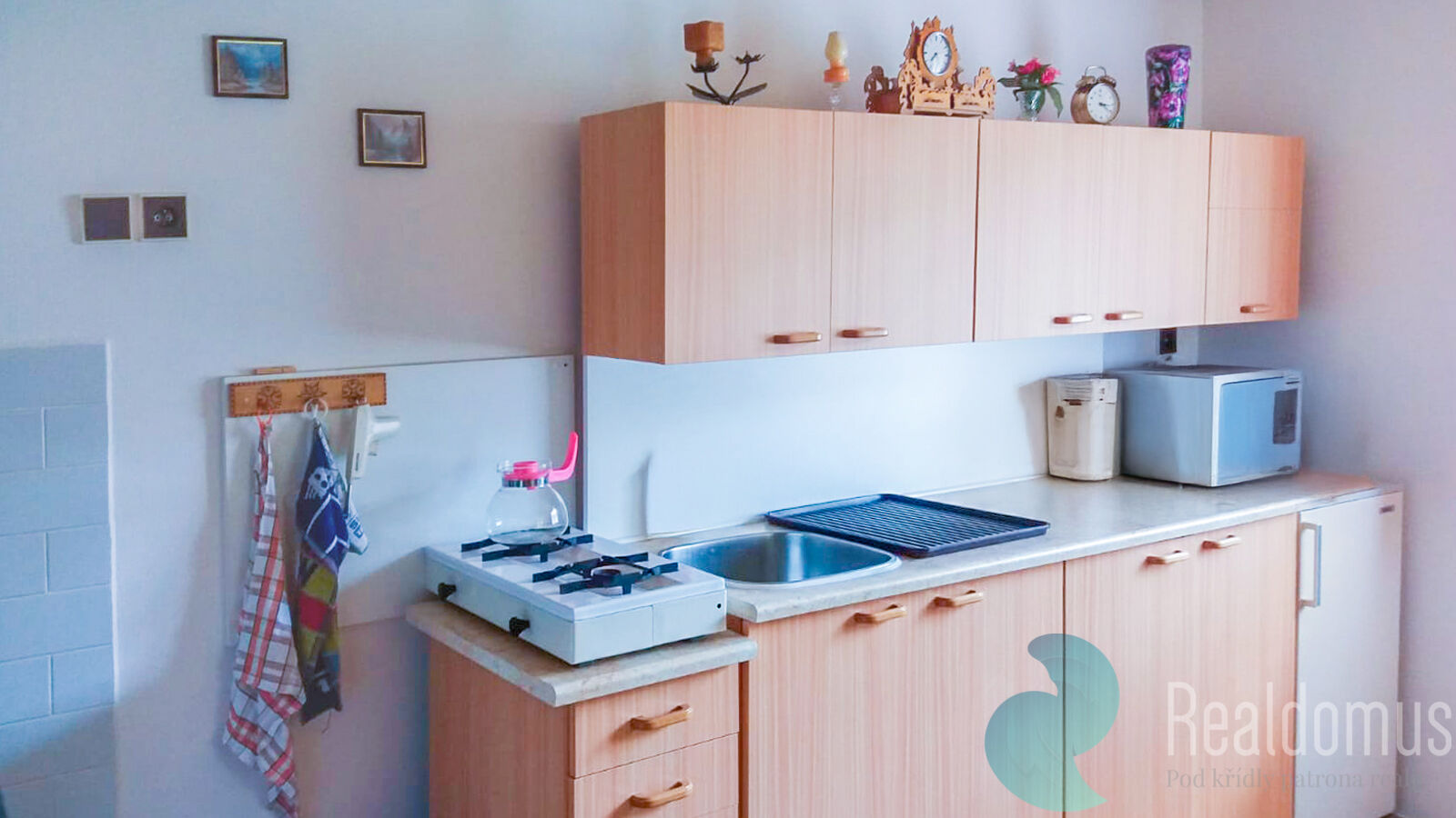 Vytápění je kamny, na kterých se dá i vařit. V přízemí se nachází kuchyň, chodba a místnost s WC, umyvadlem. V patře se nachází ložnice a balkon.