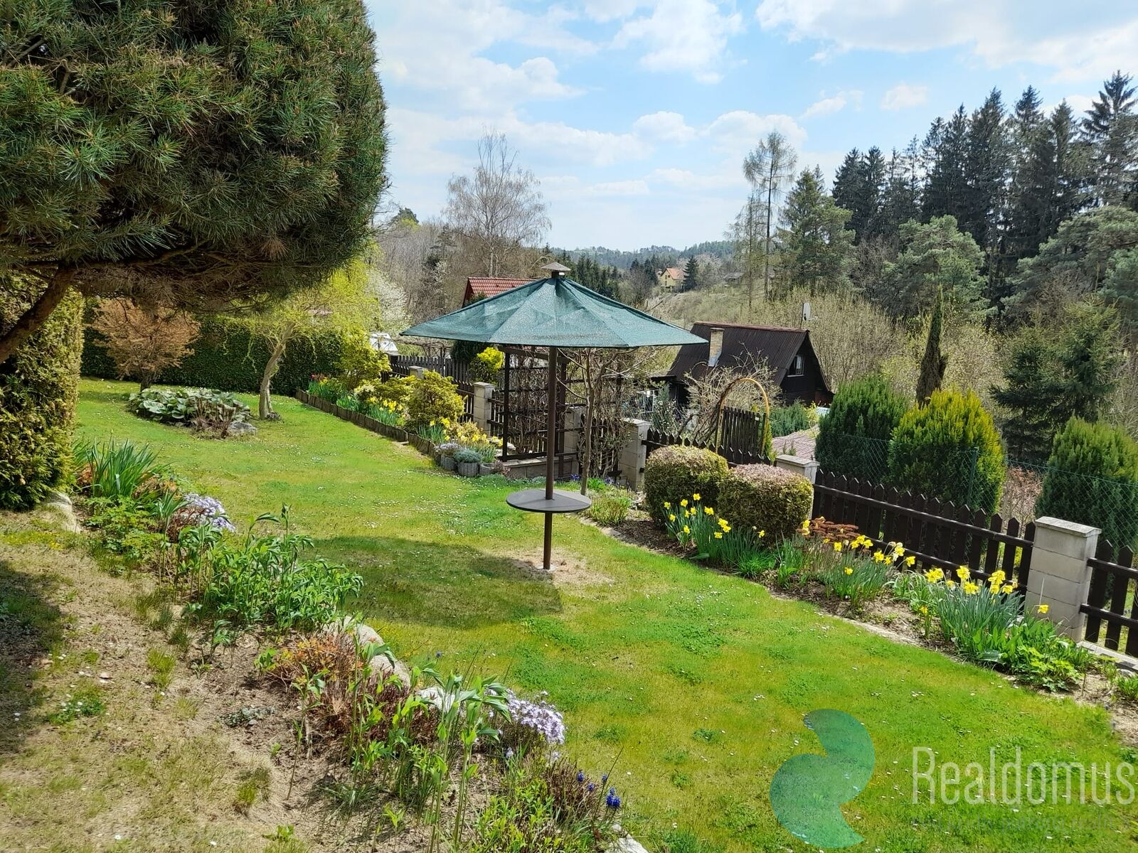 Jímka. Chata je podsklepená, kde je dílna a dostatek místa k uskladnění věcí. K posezení slouží prostorná terasa a nebo balkon v patře, odkud je nádherný výhled.