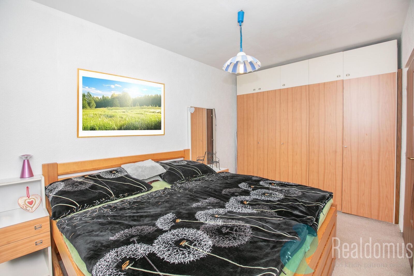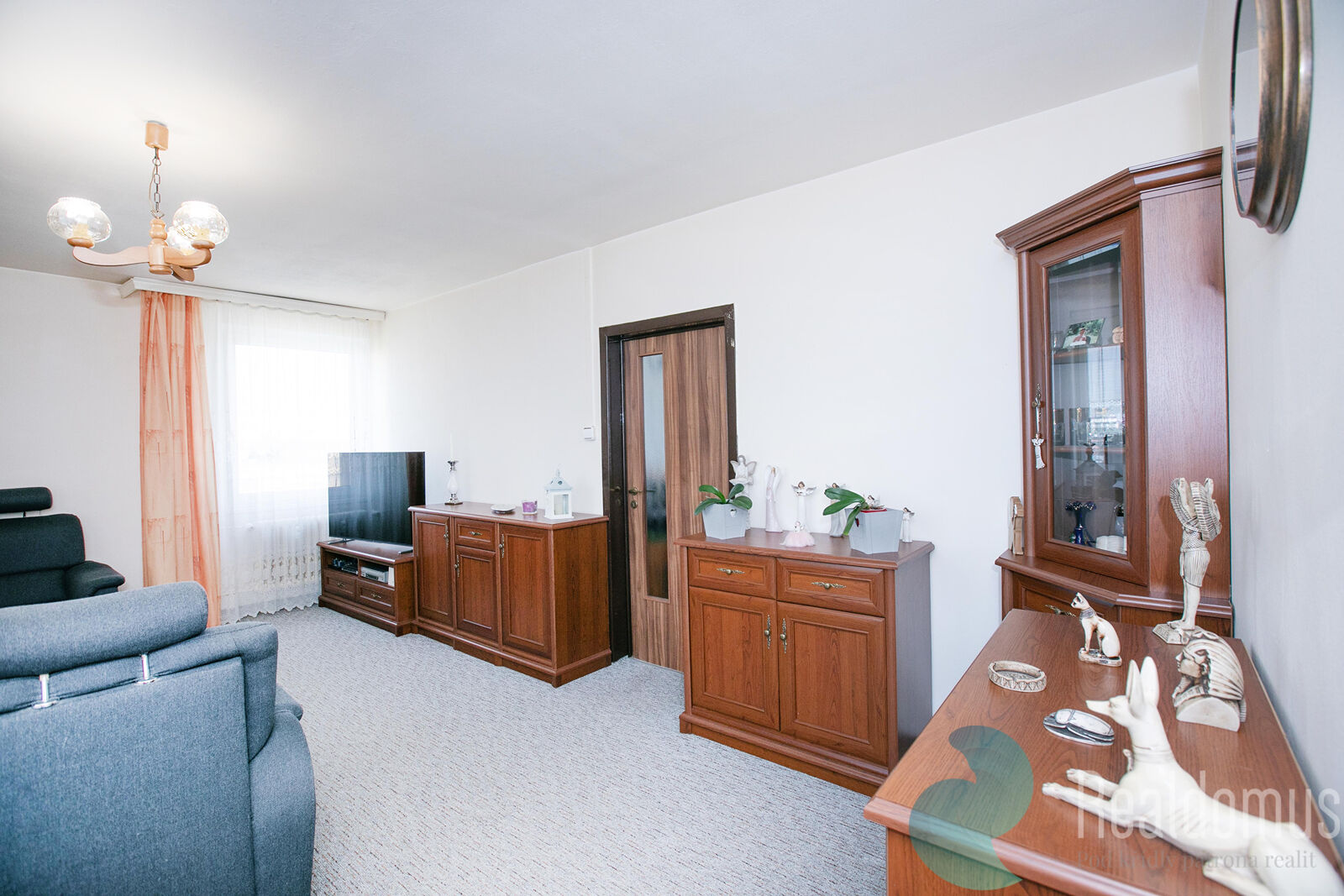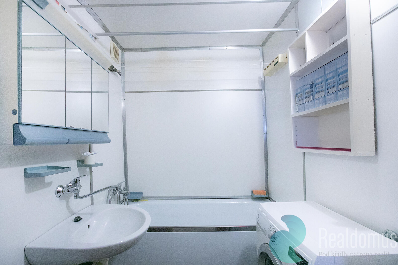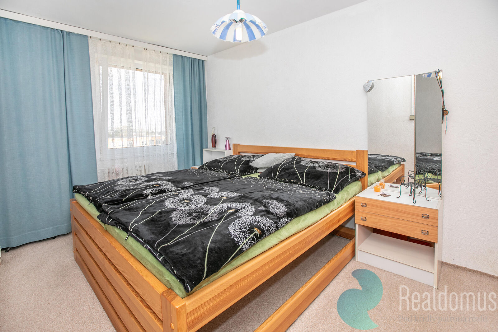 Realdomus zprostředkuje prodej družstevního bytu. Dispozice bytu dva pokoje (12,55 m2 a 12,19 m2), obývací pokoj (23,93 m2), kuchyň (6,53 m2), předsíň (12,38 m2), koupelna (2,90 m2), WC (0,90 m2). Dále k bytu náleží sklep (2,35 m2). Celková plocha bytu včetně sklepa činí 75,71 m2. Kuchyň je vybavena plynovým sporákem a digestoří. Okna jsou plastová s dvojsklem.