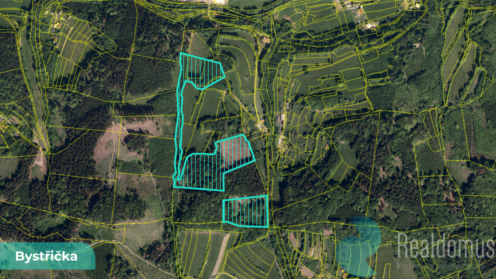 Pozemky se nacházejí v klidné části přírody v okolí obce Bystřička, v oblasti charakteristické rozsáhlými lesními porosty a minimální zástavbou. Lokalita nabízí stabilní prostředí vhodné pro dlouhodobé držení lesních pozemků.