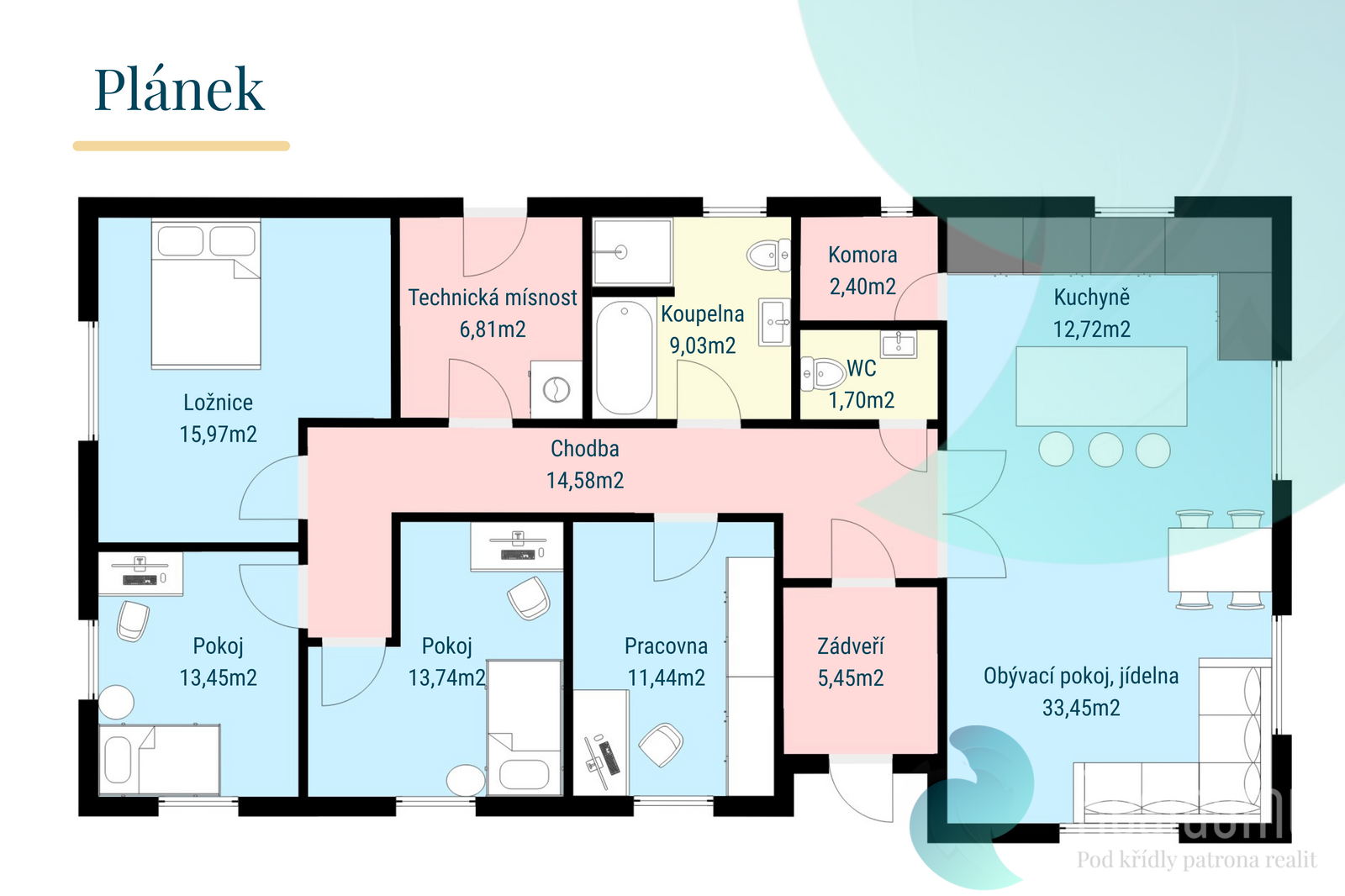 Uvedené výměry jsou orientační. Veškeré zveřejněné údaje v tomto inzerátu mají pouze informativní charakter.