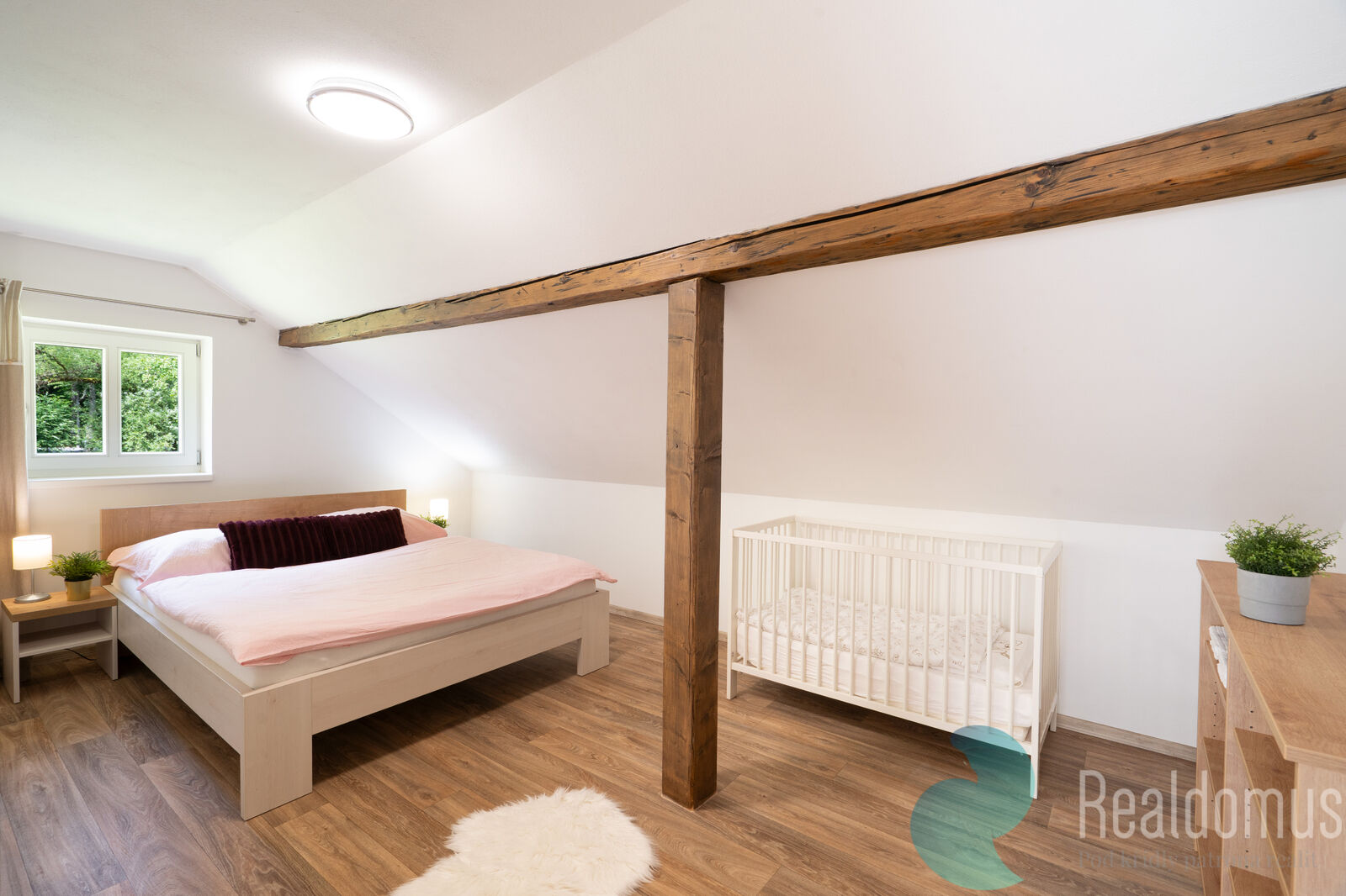 • Patro: 1.ložnice (manželská postel, postýlka), 2. ložnice (3x jednolůžko), galerie (rozkládací pohovka, TV), WC