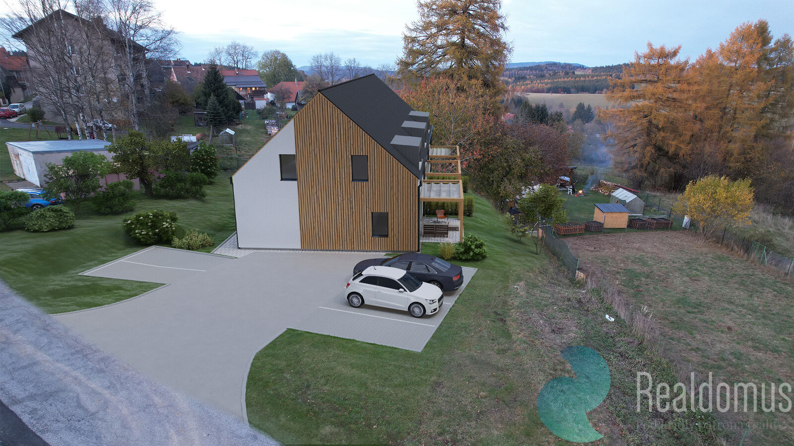 Úsporné bydlení – dřevostavba s kvalitním zateplením, trojskly a tepelným čerpadlem Buderus.