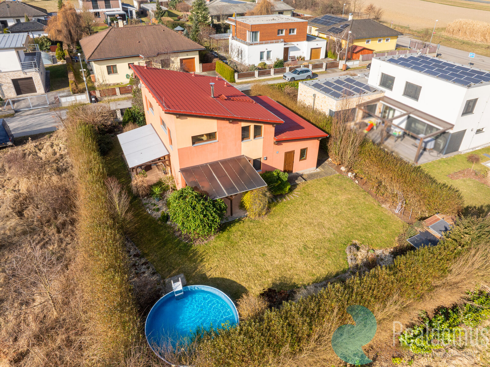 Střecha domu je z plechové krytiny - švédské oceli, okna jsou plastová s izolačními dvojskly. V obytných místnostech jsou položeny kvalitní plovoucí podlahy, v chodbě v přízemí a v koupelnách je dlažba. Dům není podsklepen, dostatek úložného prostoru ovšem poskytuje velká zděná garáž s úložným prostorem na půdě a zahradní domek.