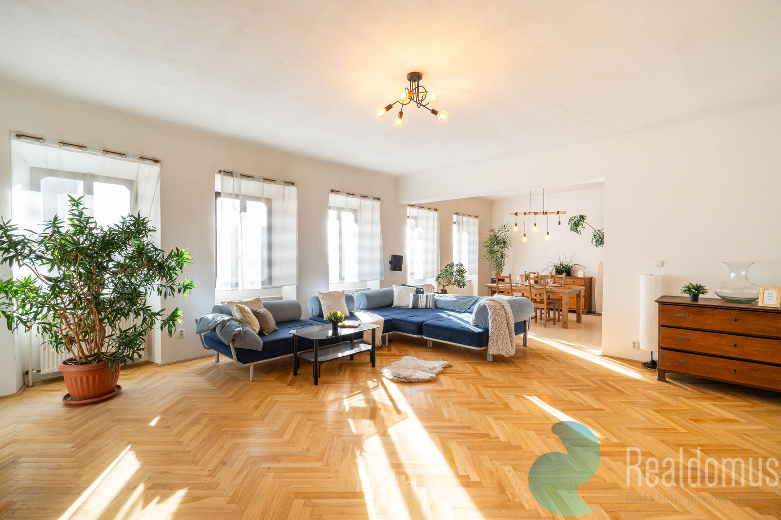 Ve druhém nadzemním podlaží se nachází prostorný a udržovaný byt 5+kk připravený k okamžitému nastěhování. Dispozici tvoří kuchyně s jídelním koutem a obývacím pokojem, ložnice, dva dětské pokoje a pracovna. Komfort zajišťují dvě koupelny – samostatná koupelna pro dětské pokoje a druhá přístupná z hlavní obytné části. Byt nevyžaduje okamžitou rekonstrukci.