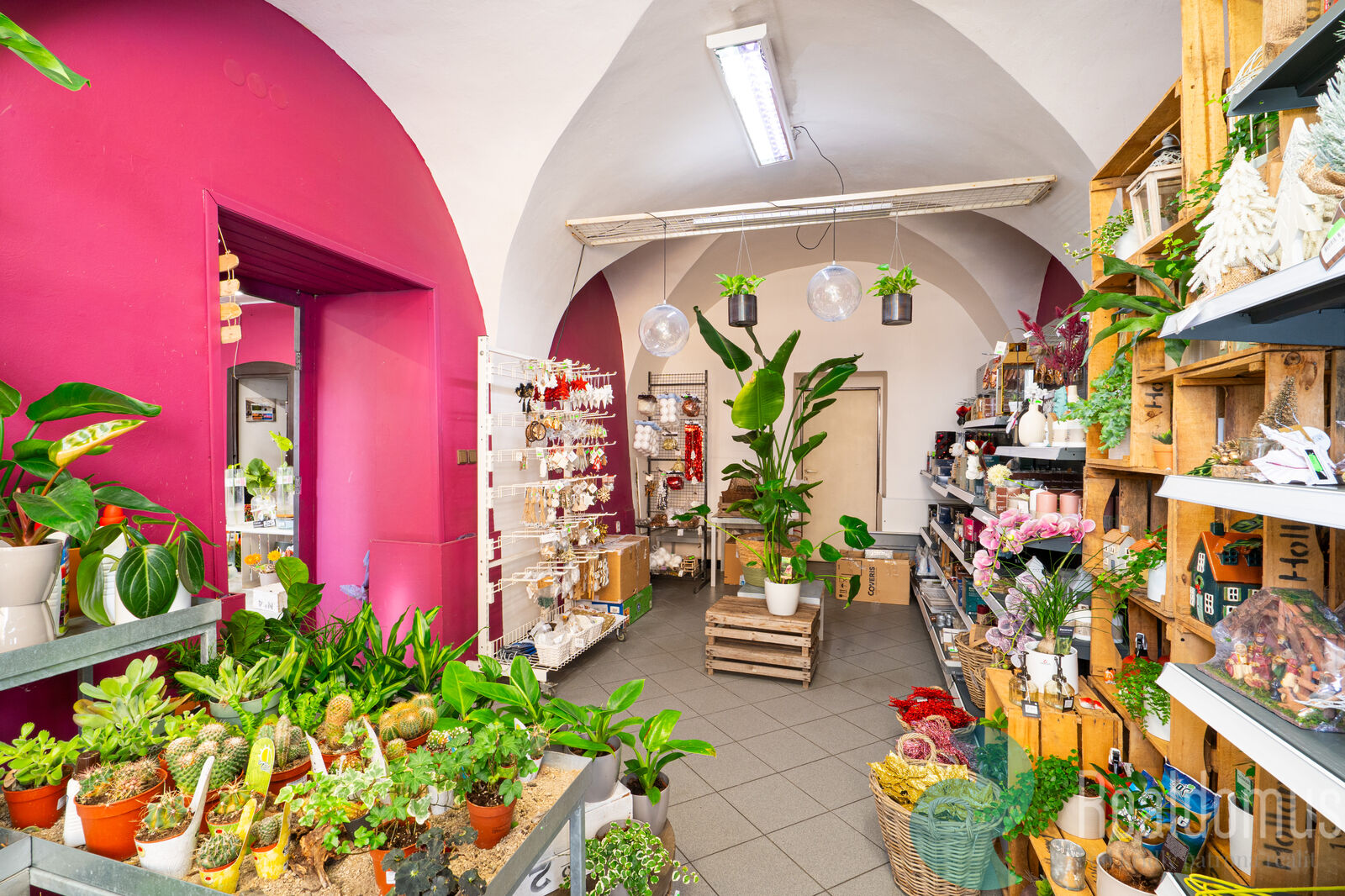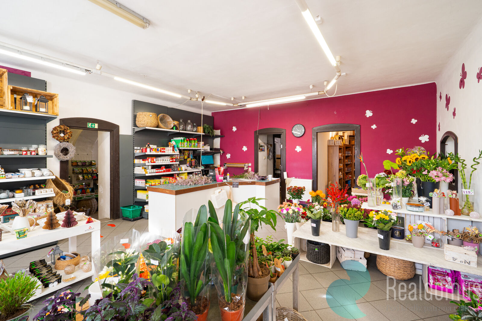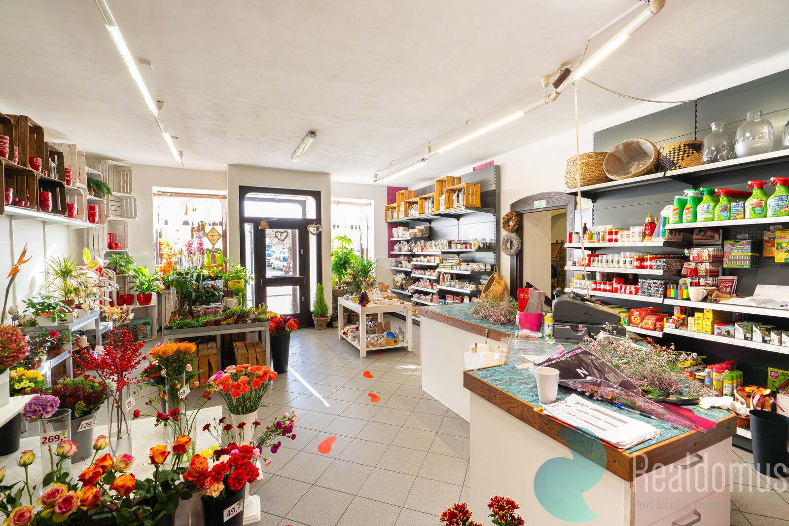 V přízemí se nachází zavedené obchodní prostory, které majitel dlouhodobě využívá jako květinářství. Je zde možnost pokračovat ve stávajícím nájemním vztahu formou smluvního pronájmu, nebo prostory převzít pro vlastní podnikání.