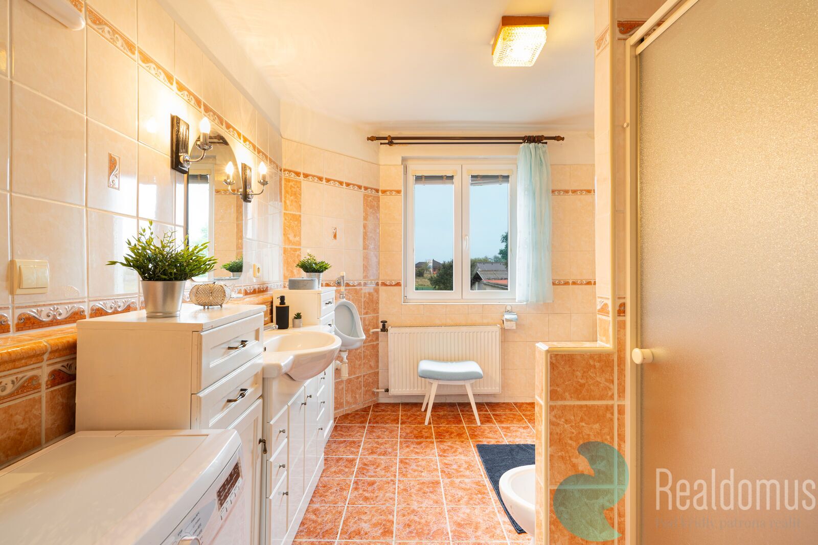 Rodinný dům o dvou nadzemních a jednom podzemním podlaží má dispozici 8+1 a užitnou plochu 164 m2. Po vstupu do domu hlavním vchodem ze zádveří je chodba se schodištěm do podkroví a sklepa. V prvním patře se nachází kuchyně s velkou jídelnou, kde jsou krbová kamna. Velký obývací pokoj je propojen s prosklenou, světlou přístavbou, která je využívána jako pracovna. Z obývacího pokoje je vstup do ložnice. V přízemí je větší koupelna se sprchovým koutem i vanou, toaletou a pisoárem. V patře jsou čtyři samostatné, neprůchozí pokoje, koupelna s vanou a komora. Celá obytná část tak lze rozdělit na dvě samostatné jednotky.