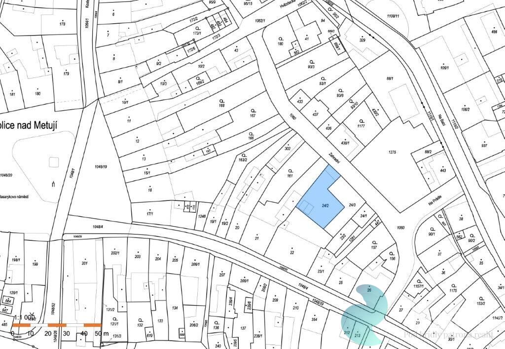 Pozemek se nachází na klidném místě poblíž centra města Police nad Metují. Vzdálenost od náměstí je přibližně 280m. Neopakovatelná poloha pozemku nabízí možnost využití pro soukromí i komerční záměr.