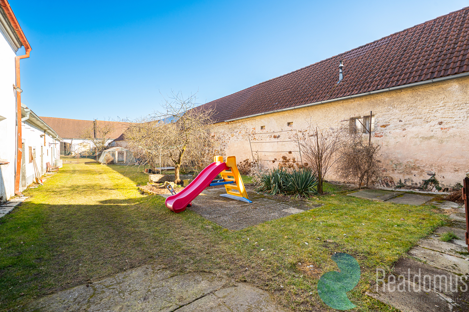 Uzavřený dvůr nabízí příjemné prostředí pro relaxaci, koupání v bazénu a další aktivity. Zahrada v zadní části nemovitosti je ideálním místem pro zahradničení a chov hospodářských zvířat. Vzhledem k celkové dispozici a umístění představuje nemovitost perfektní příležitost pro trvalé bydlení či podnikatelské aktivity.