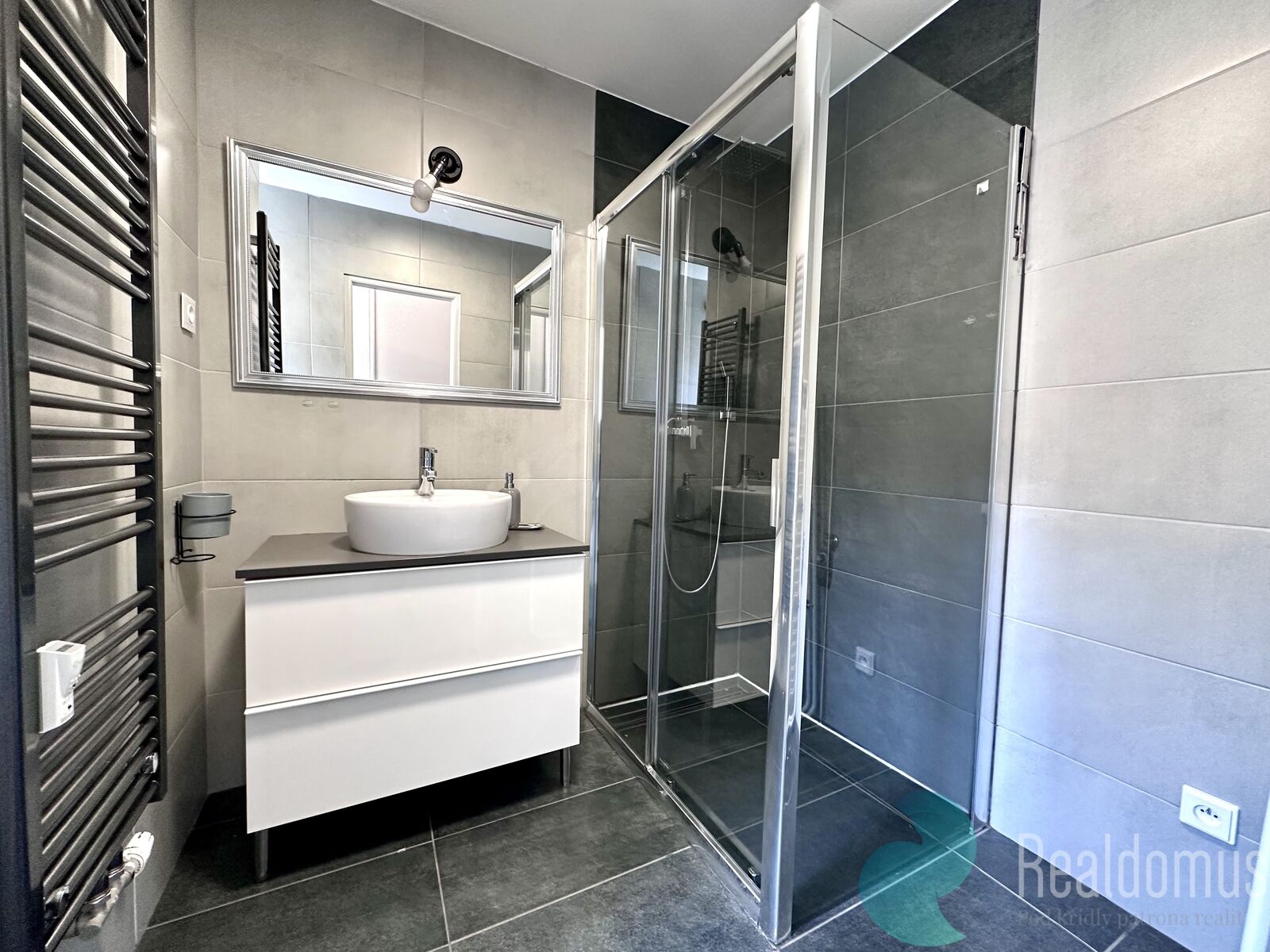- moderní koupelnu s velkým sprchovým koutem a místem pro pračku i sušičku