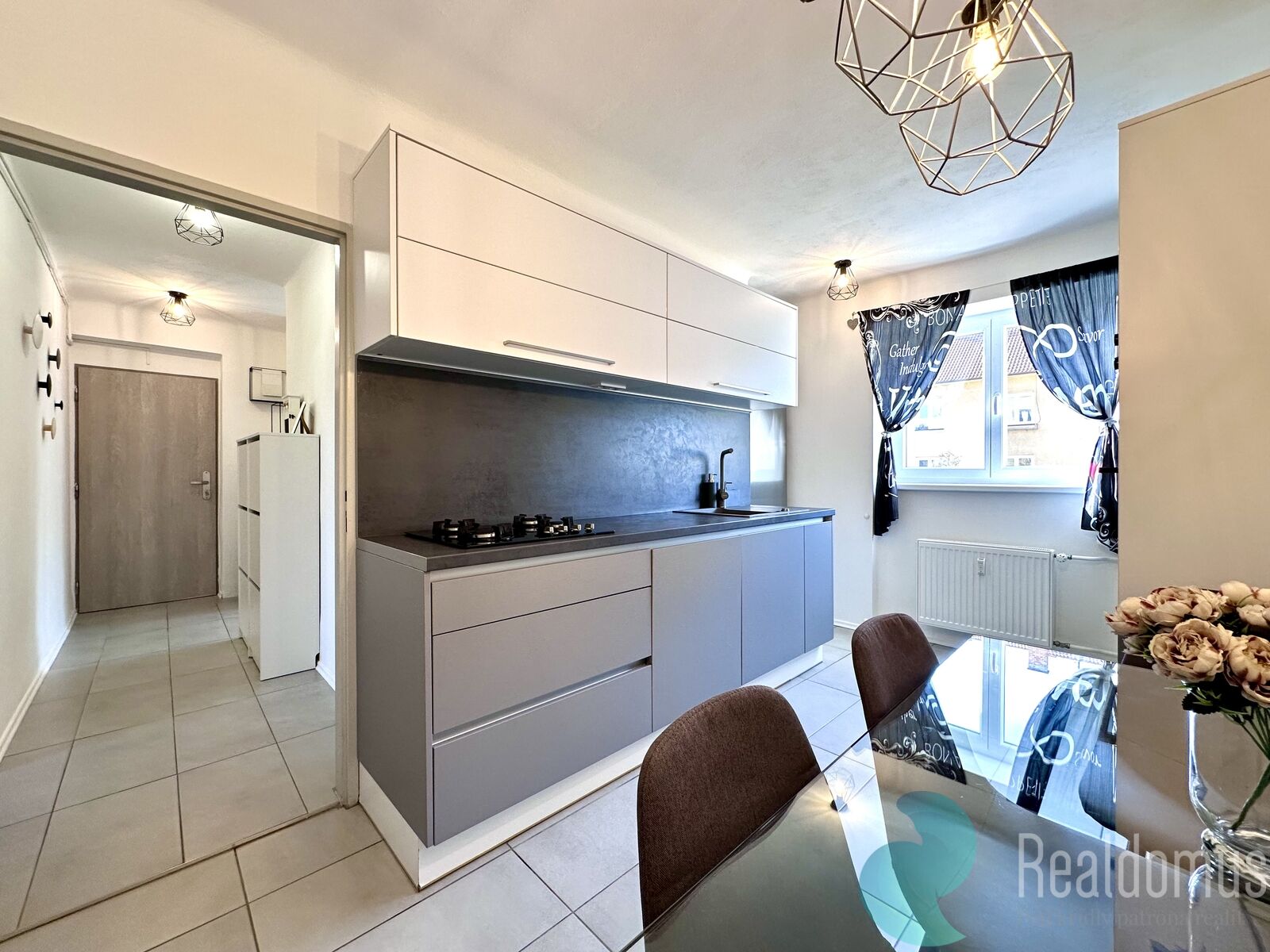 - plně vybavenou novou kuchyňskou linku (myčka, plynový sporák, elektrická trouba, mikrovlnná trouba, lednice s mrazákem),