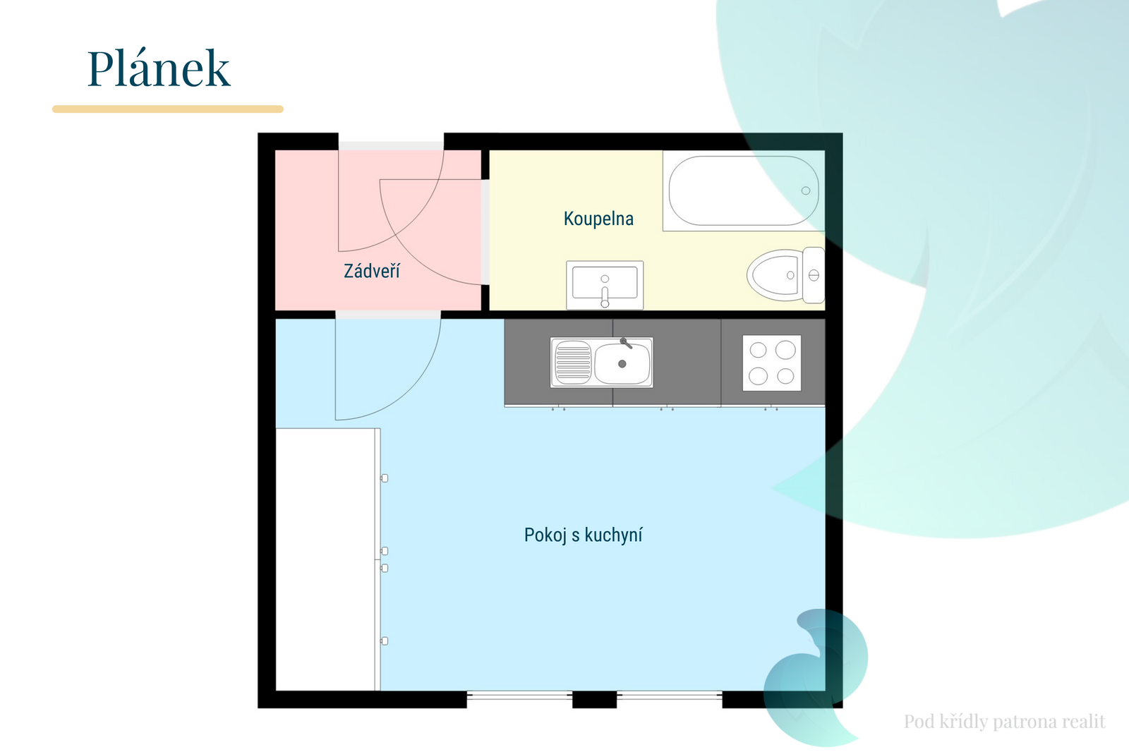 • jednotlivé výměry : pokoj 20,9 m2, předsíň 4,5 m2, koupelna 6 m2