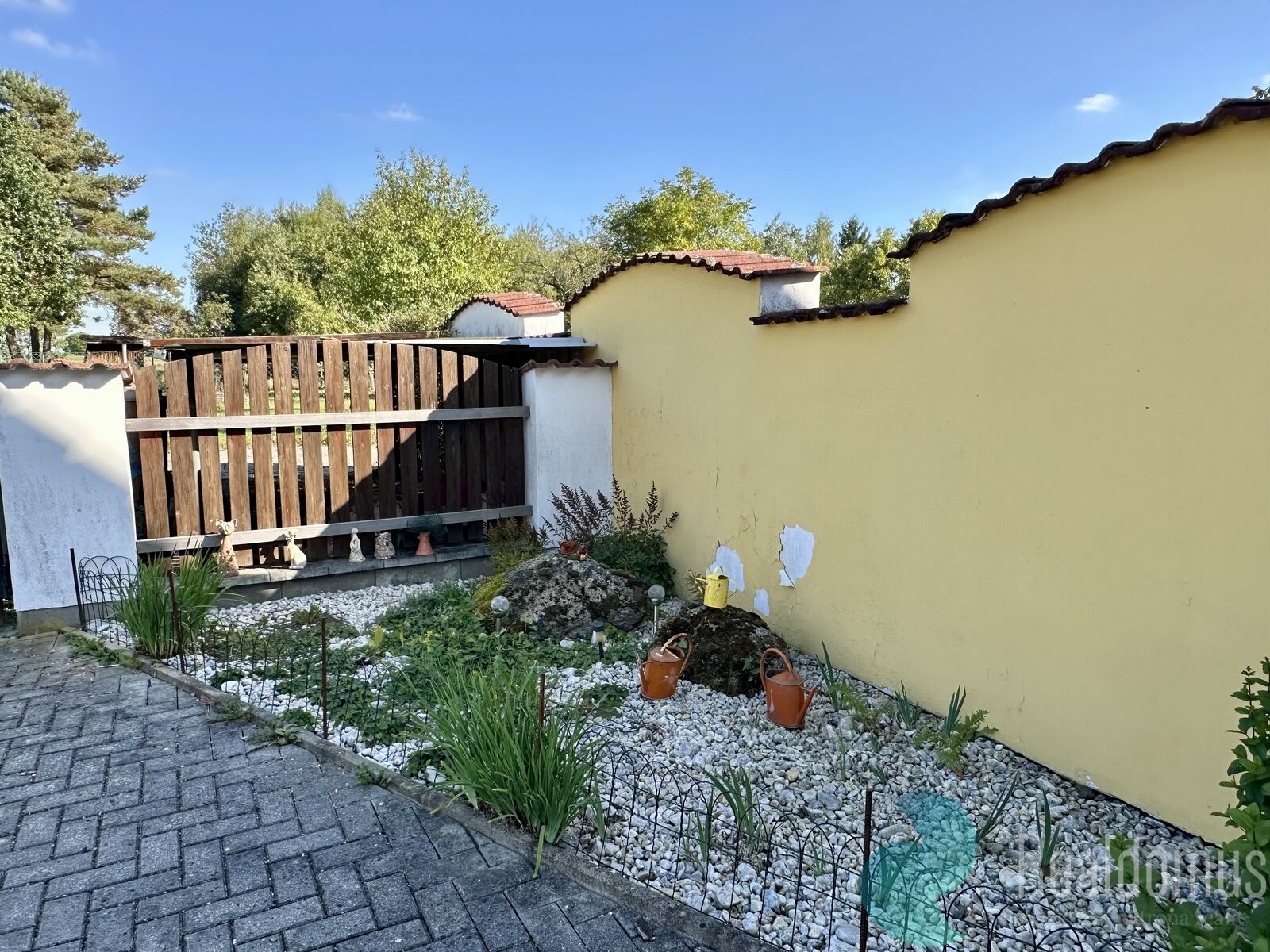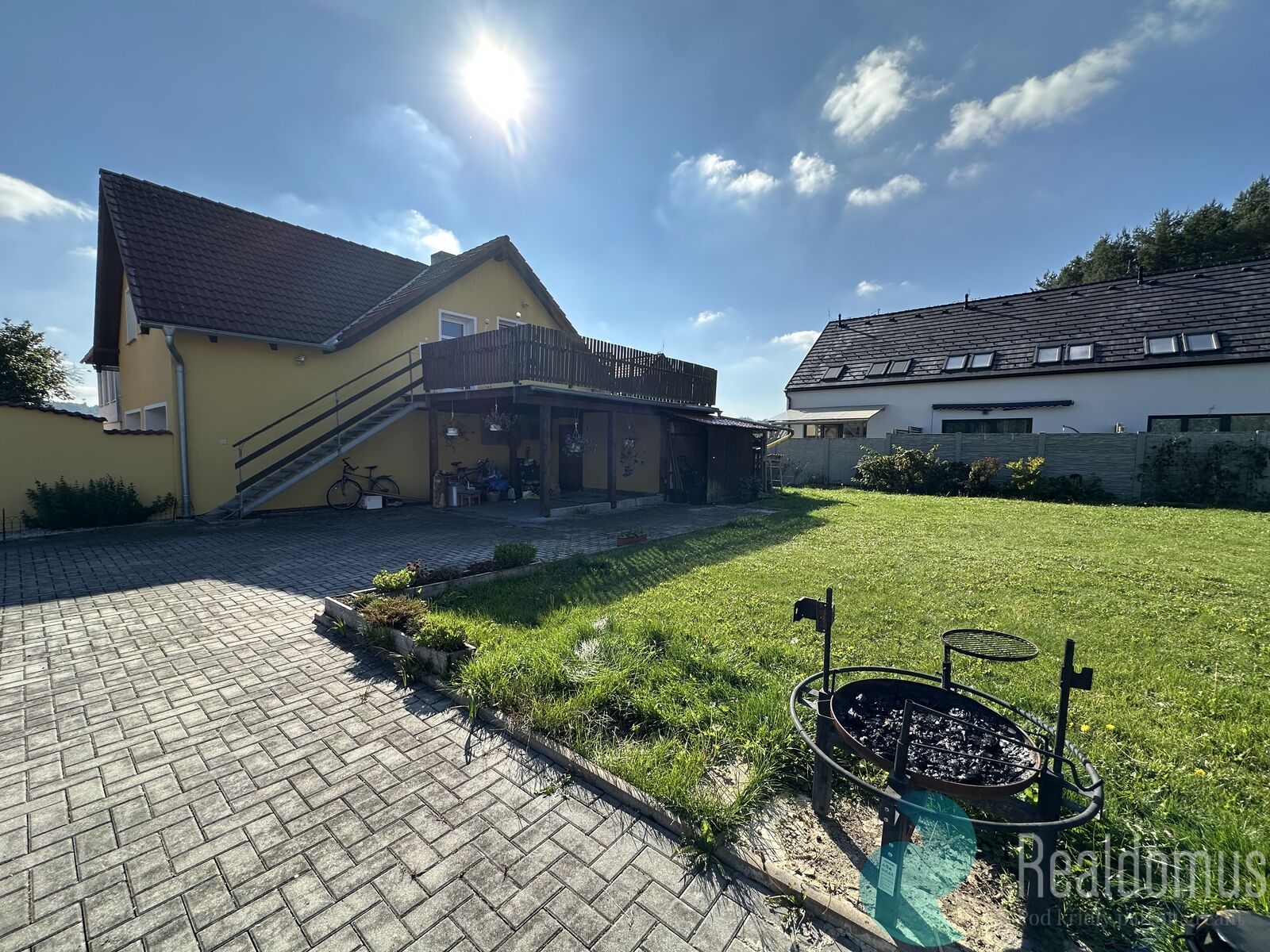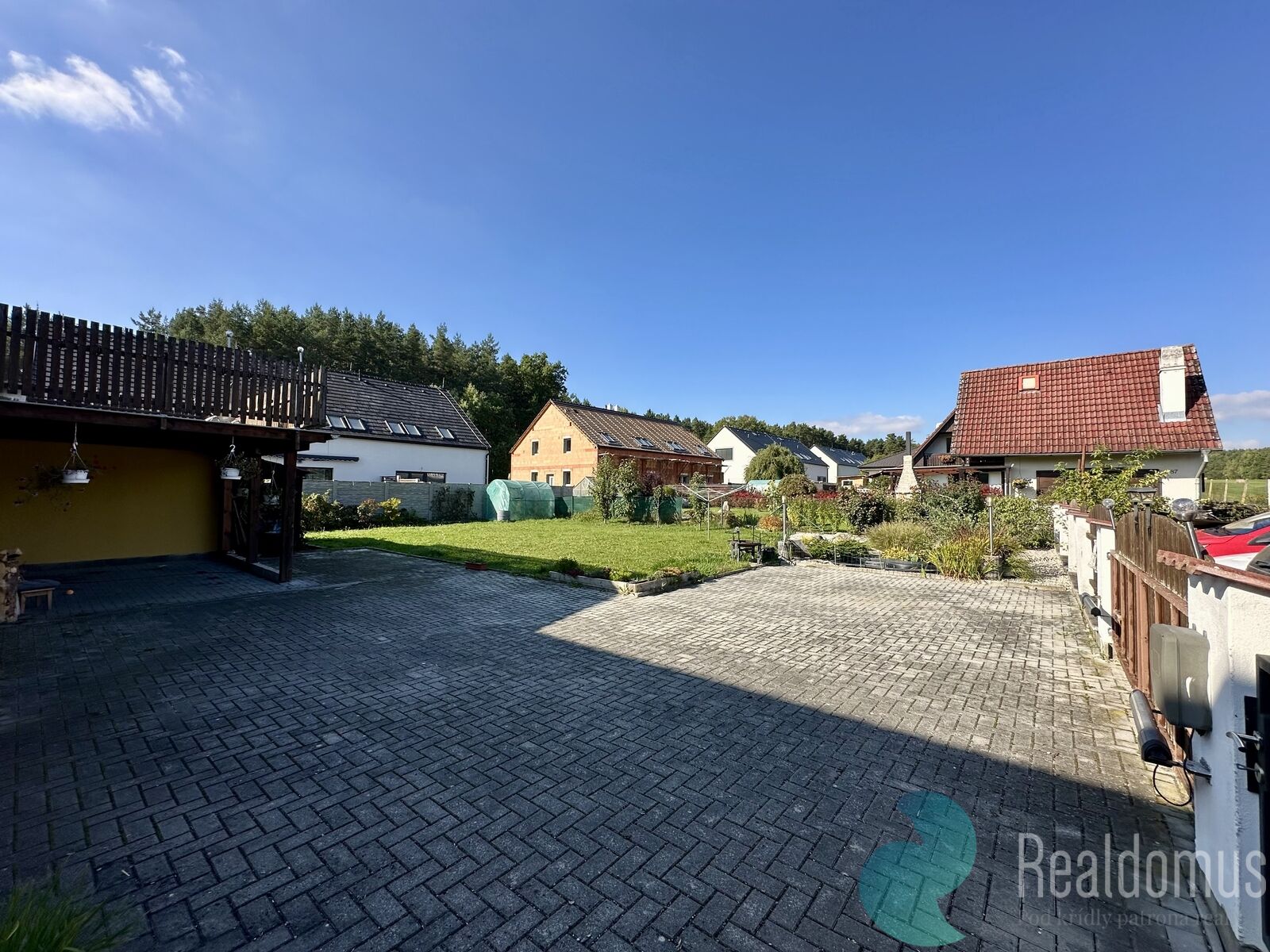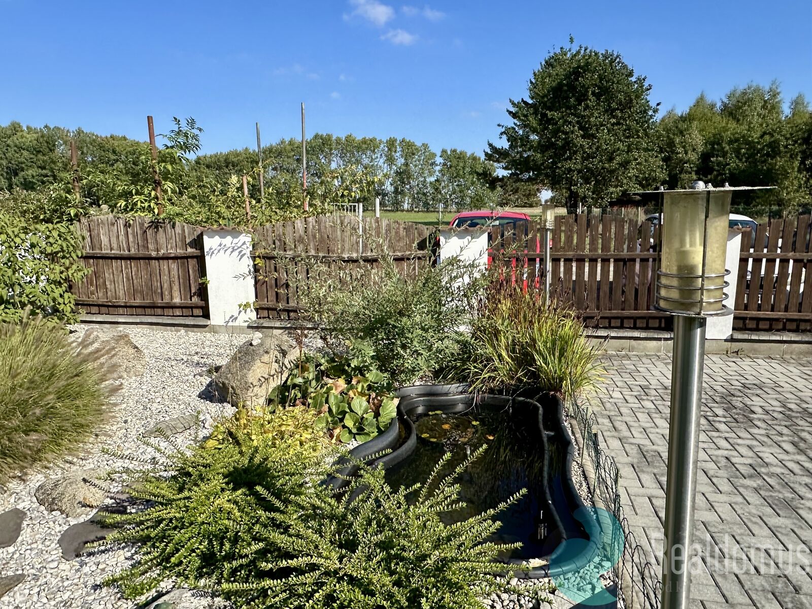 Nachází se zde zahrada 400 m² s jezírkem, pergolou a místem pro grilování či odpočinek, kůlna na dřevo i místo na kola. Navíc jsou zde k dispozici 4 parkovací místa přímo u domu.