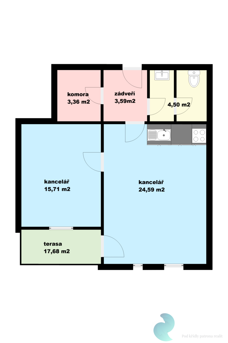 Nájemné 13.540,- Kč / měs. včetně úklidu, 1x parkovacího stání a svozu odpadu