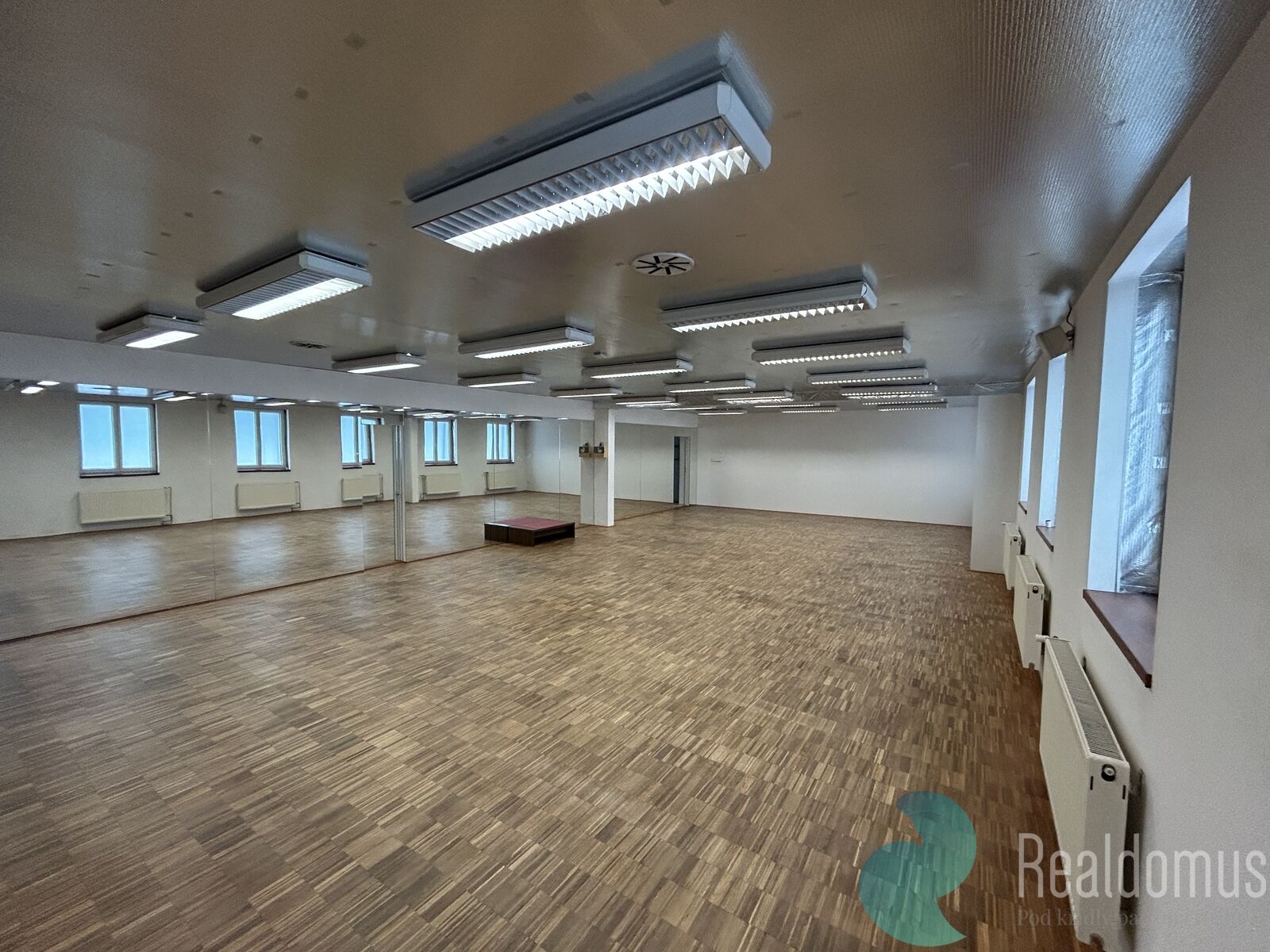 Součástí nabídky je také možnost pronájmu navazujících kancelářských prostor v patře o výměře 139 m². Tyto prostory lze stavebně propojit se sálem a vytvořit tak jeden průchozí celek, což výrazně rozšiřuje možnosti využití, například pro administrativní zázemí, další cvičební místnosti či kanceláře.