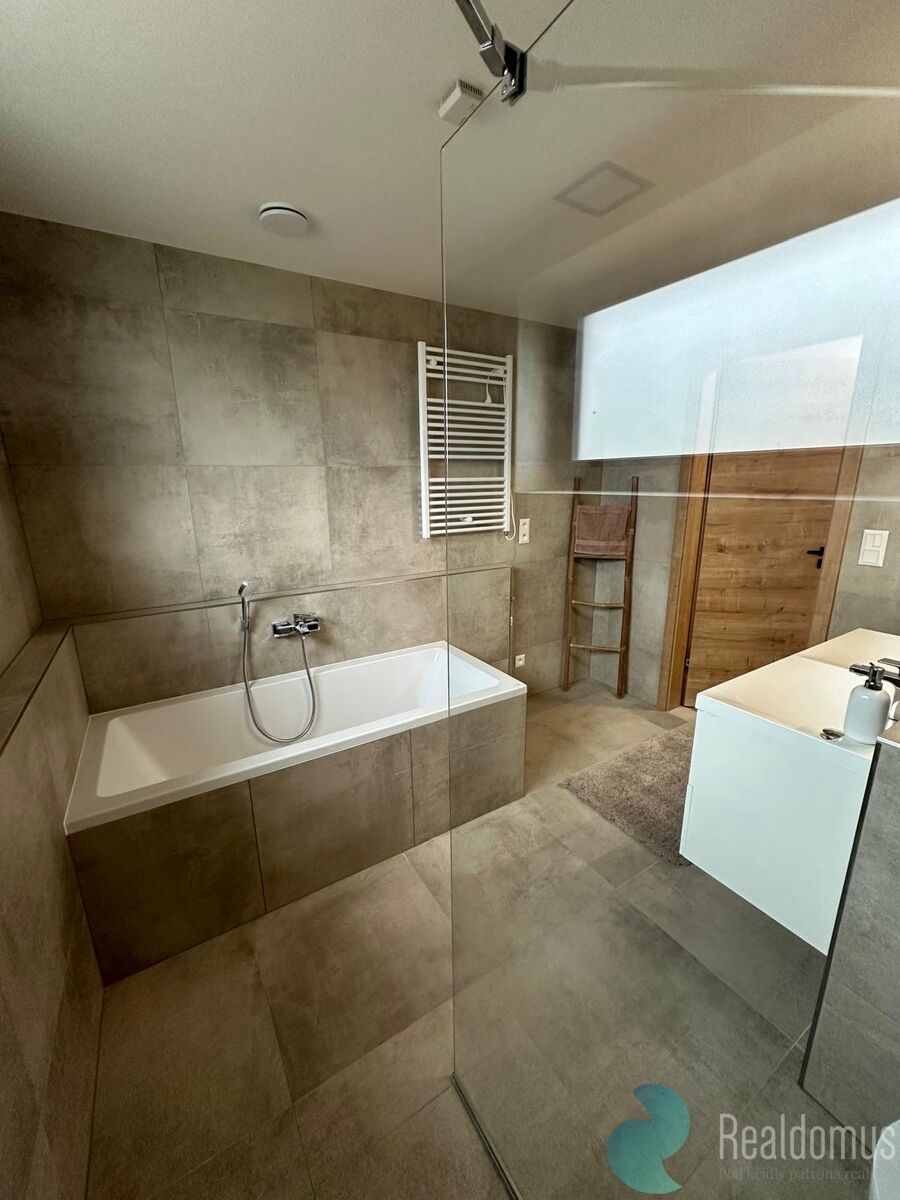 • Koupelna s vanou, sprchovým koutem a dvěma umyvadly