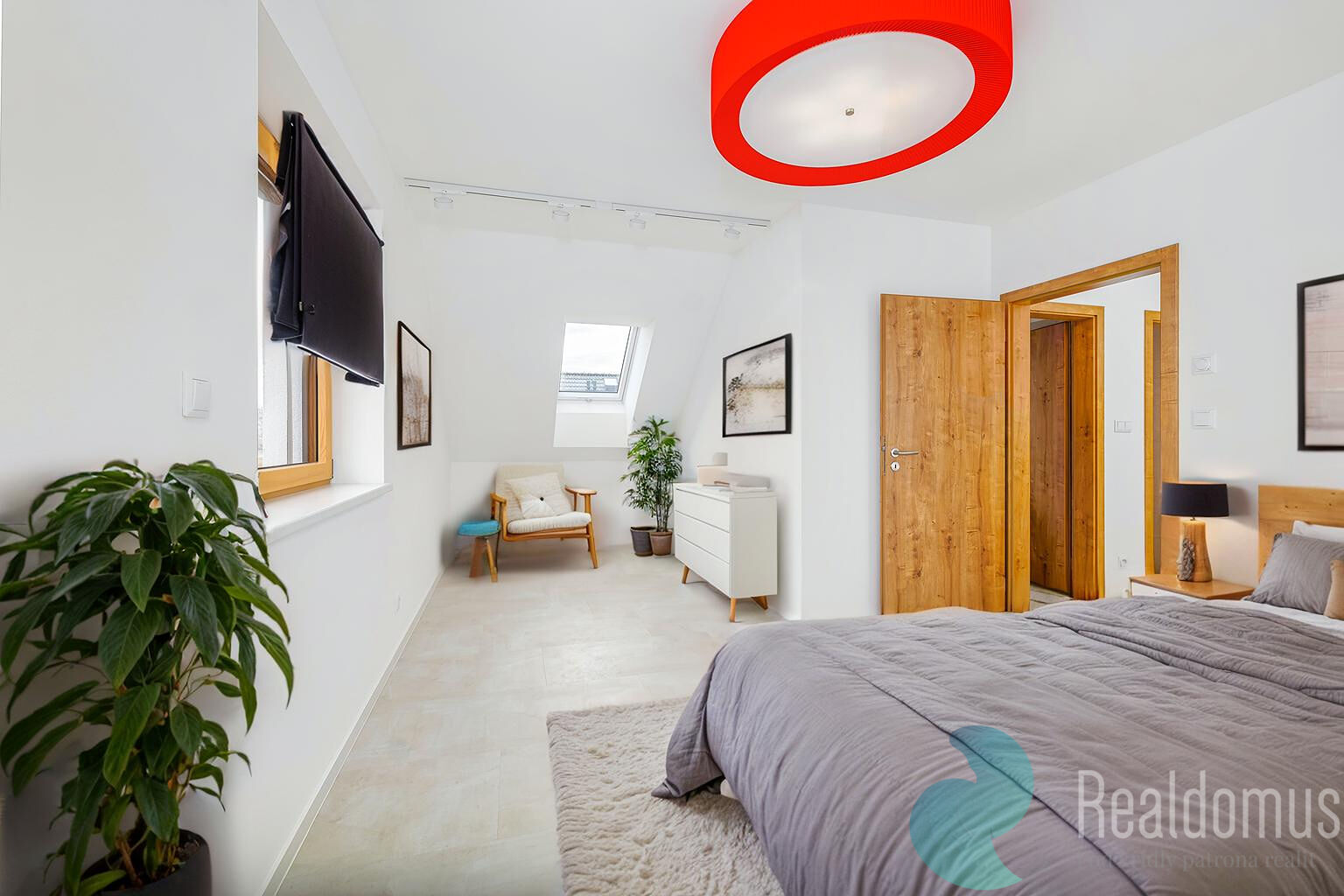 Dům je postaven z kvalitních tradičních materiálů s důrazem na detail a dlouhou životnost. Dřevohliníková okna a dveře, betonová krytina, silikonová fasáda, to vše podtrhuje precizní zpracování celého domu.