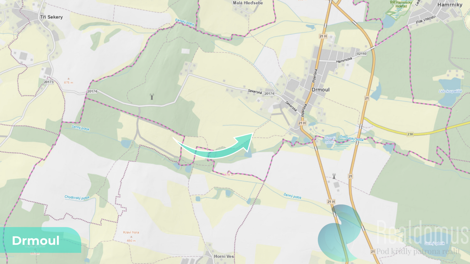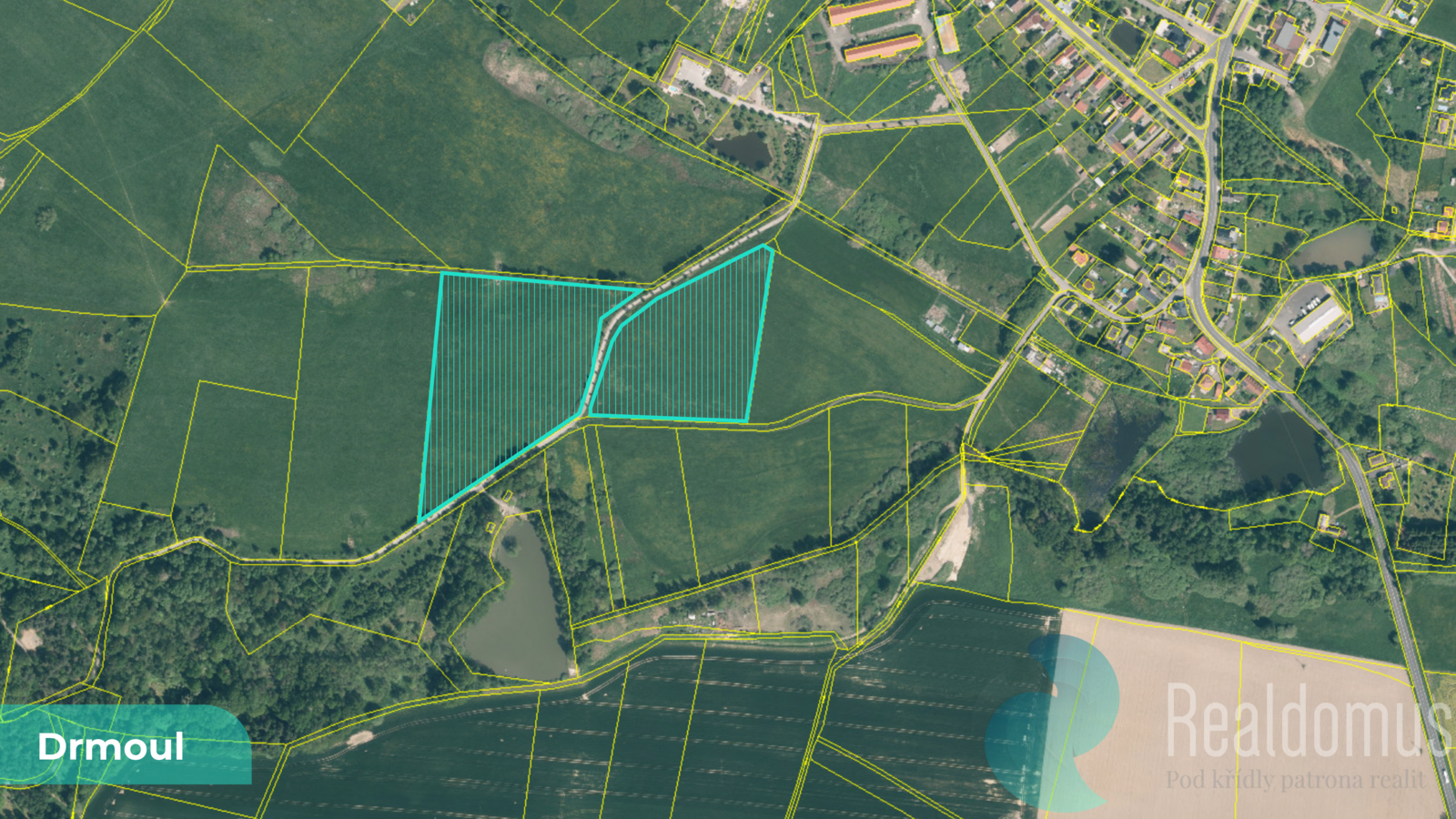 Nabízíme spoluvlastnický podíl o velikosti 1/4 na pozemcích parc. č. 625/1 a 654/1 o celkové výměře 50 238 m², zapsaných na LV 92 v katastrálním území Drmoul (okres Cheb).