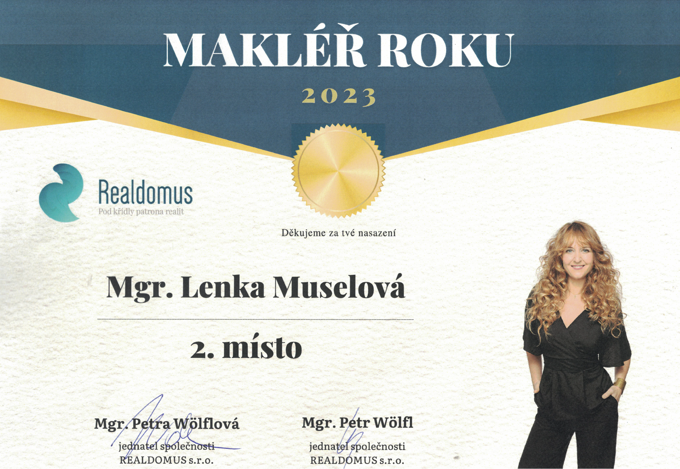 V životě i obchodě mám ráda férovost, srdečnost a otevřenost. Věřím, že jen poctivý a čistý přístup otevírá ty správné dveře a cestu ke spokojenosti všech. Chci pro své klienty jen to nejlepší, a i pro sebe hledám jen výjimečnou kvalitu. Právě proto pracuji jako makléř pro realitní kancelář Realdomus. Těším se na setkání s každým, kdo požaduje a ocení to nejlepší.