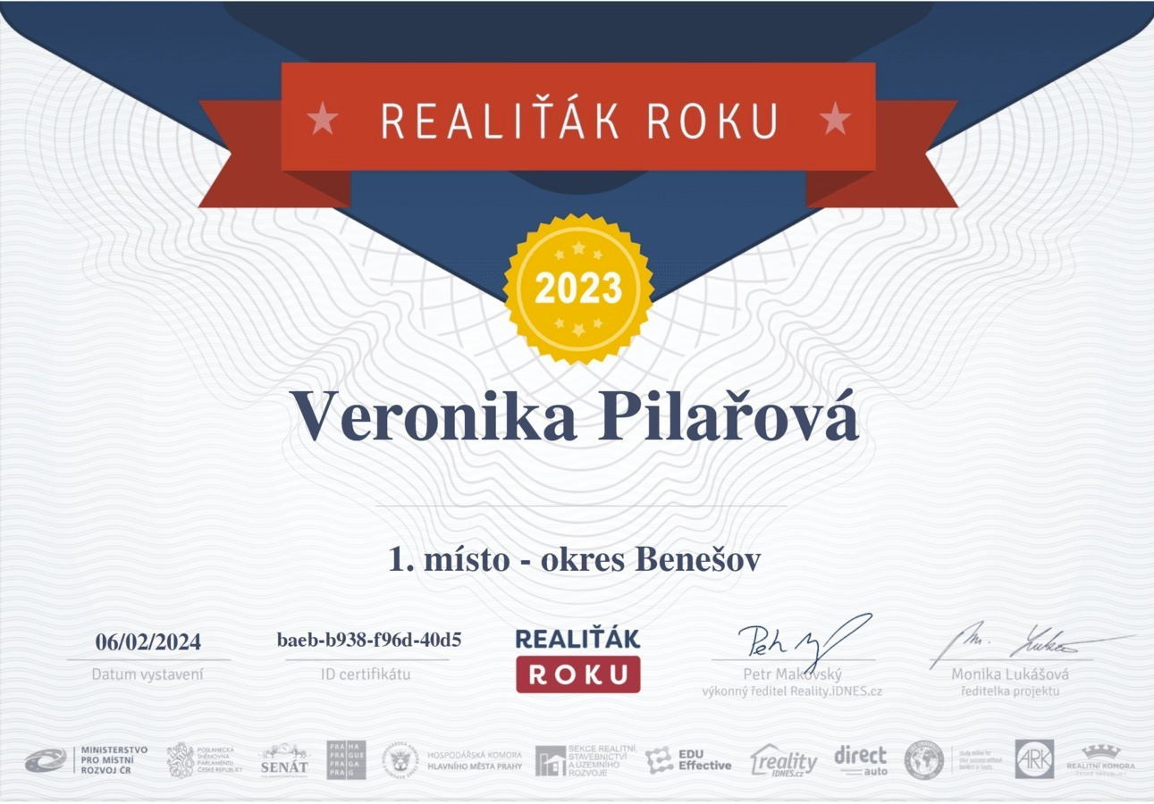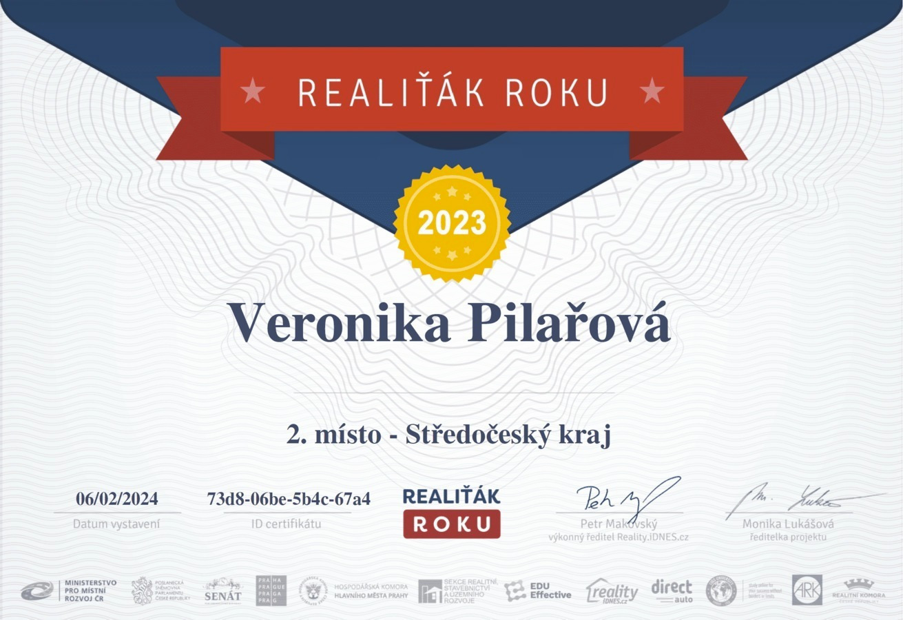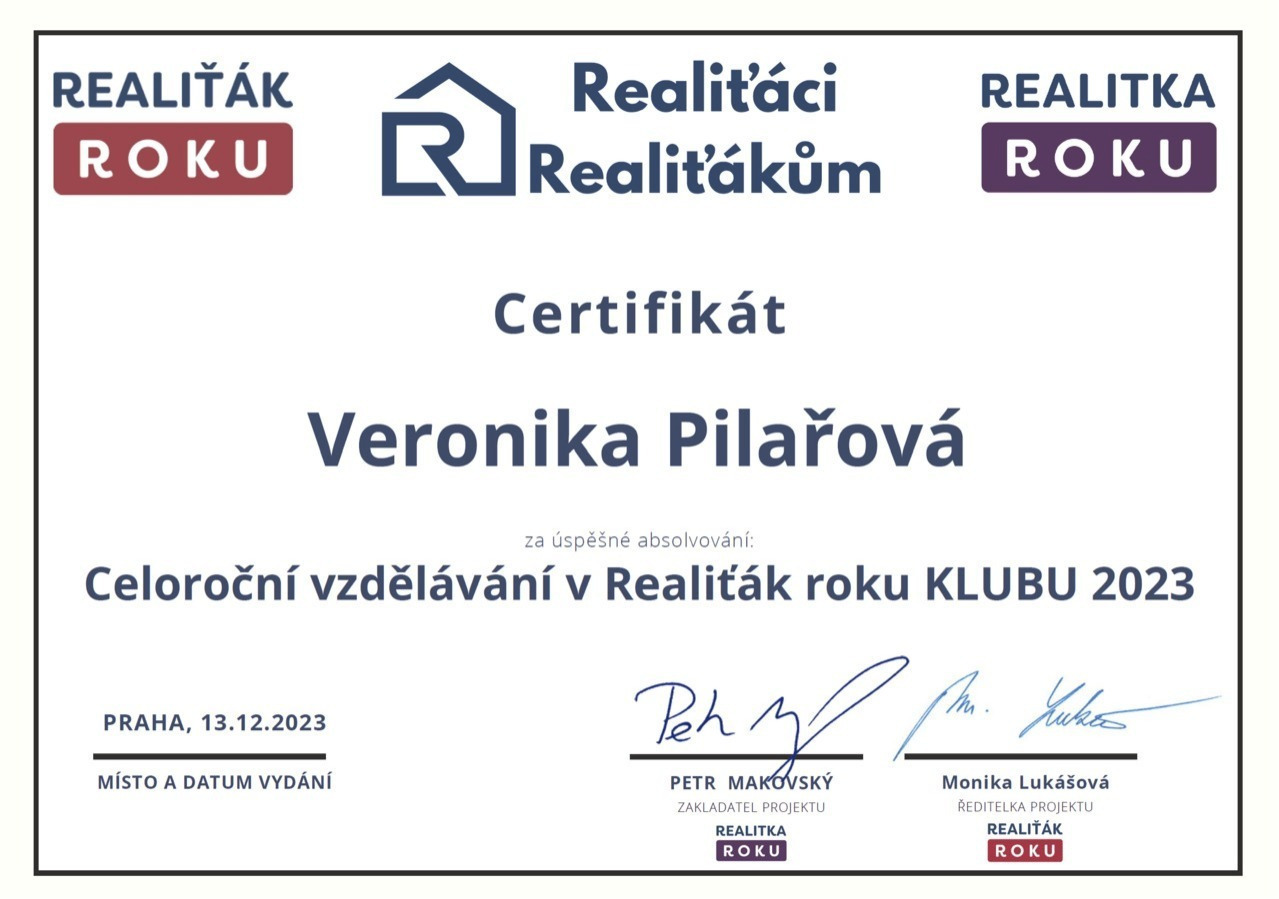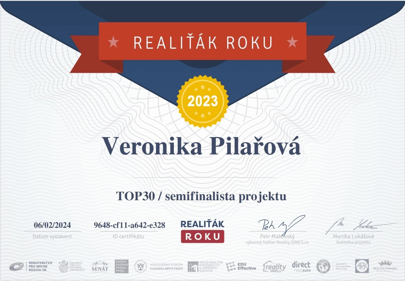 Chtěl bych touto cestou vyjádřit velké poděkování a spokojenost s prací paní Veroniky Pilařové. Prodej mé nemovitosti proběhl díky jejímu profesionálnímu přístupu naprosto hladce a bez stresu. Od prvního setkání byla velmi vstřícná a ochotná a vždy připravená. Oceňuji zejména její komunikaci, vždy mě o všem průběžně informovala. Pomohla nejen s kompletní prezentací nemovitosti, ale i s právními a administrativními kroky, což pro mě bylo obrovskou úlevou. Pokud hledáte realitního makléře, na kterého se můžete spolehnout, paní Veroniku Pilařovou mohu vřele doporučit.