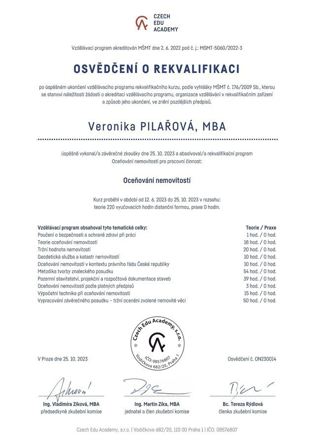 Vážená paní Pilařová, ráda bych vyjádřila poděkování za služby, které jste poskytla při prodeji nemovitosti po mém bratrovi. Vaše pracovní postupy byly vstřícné a celý proces byl zdárně ukončen. Ještě jednou děkuji za profesionální a lidský přístup.